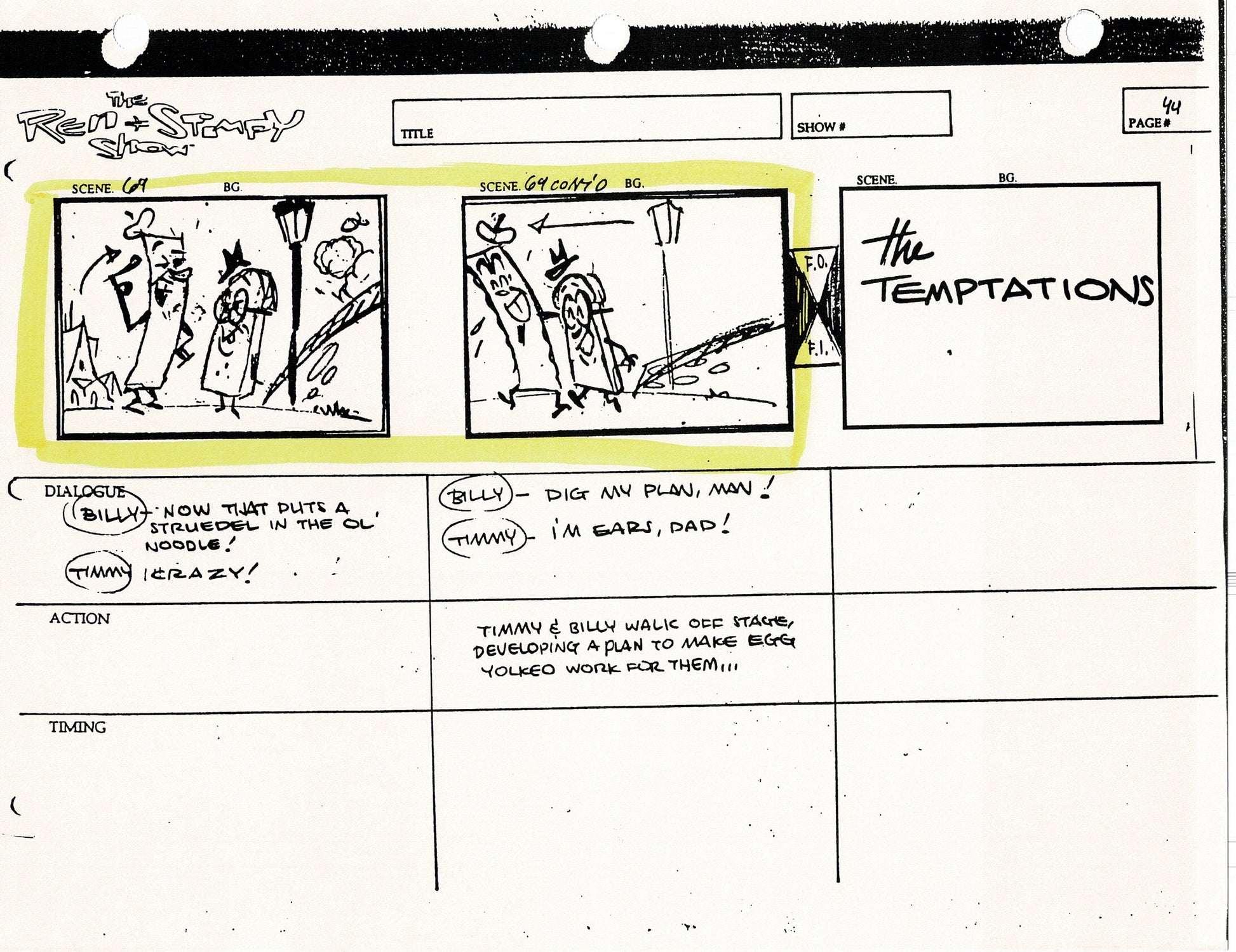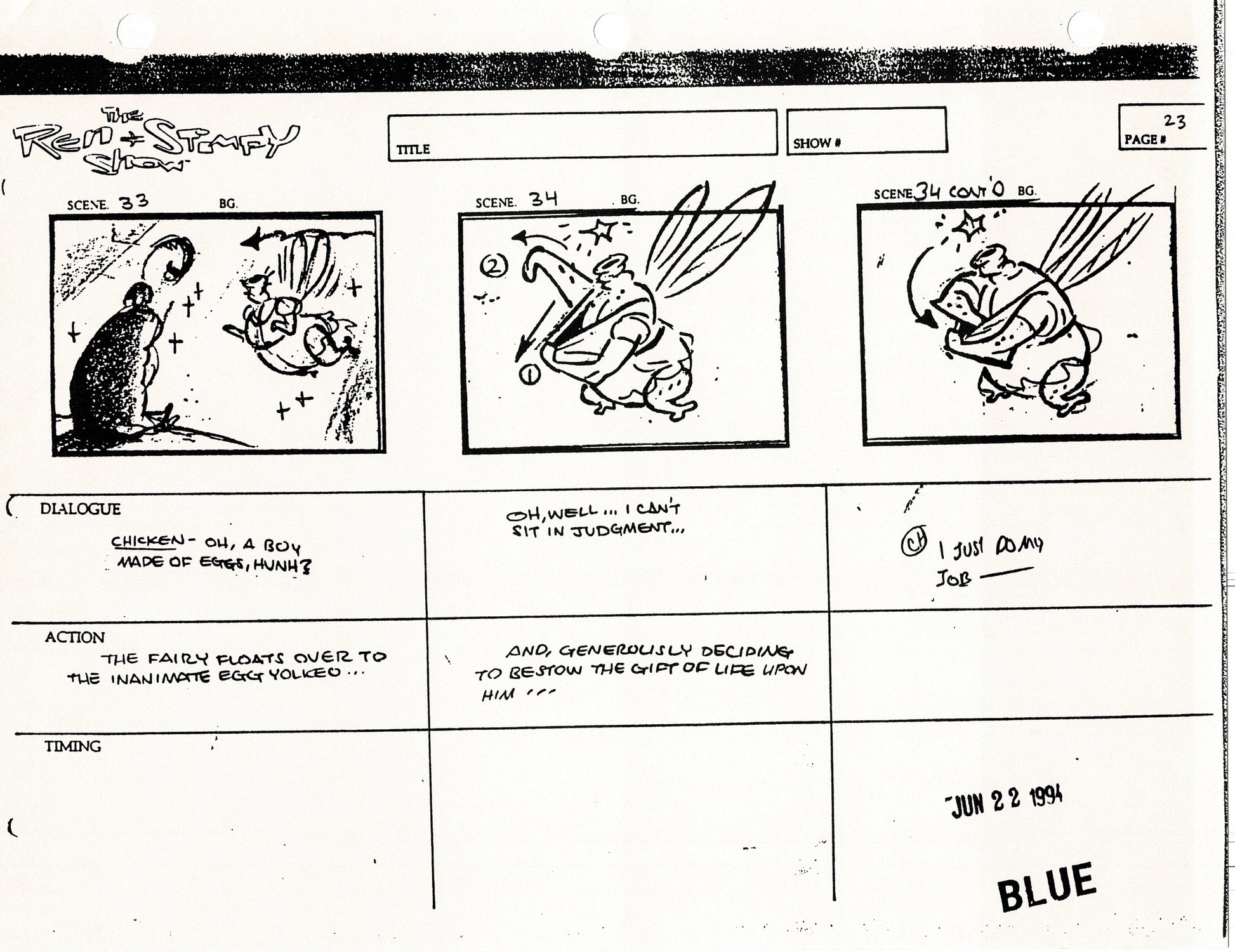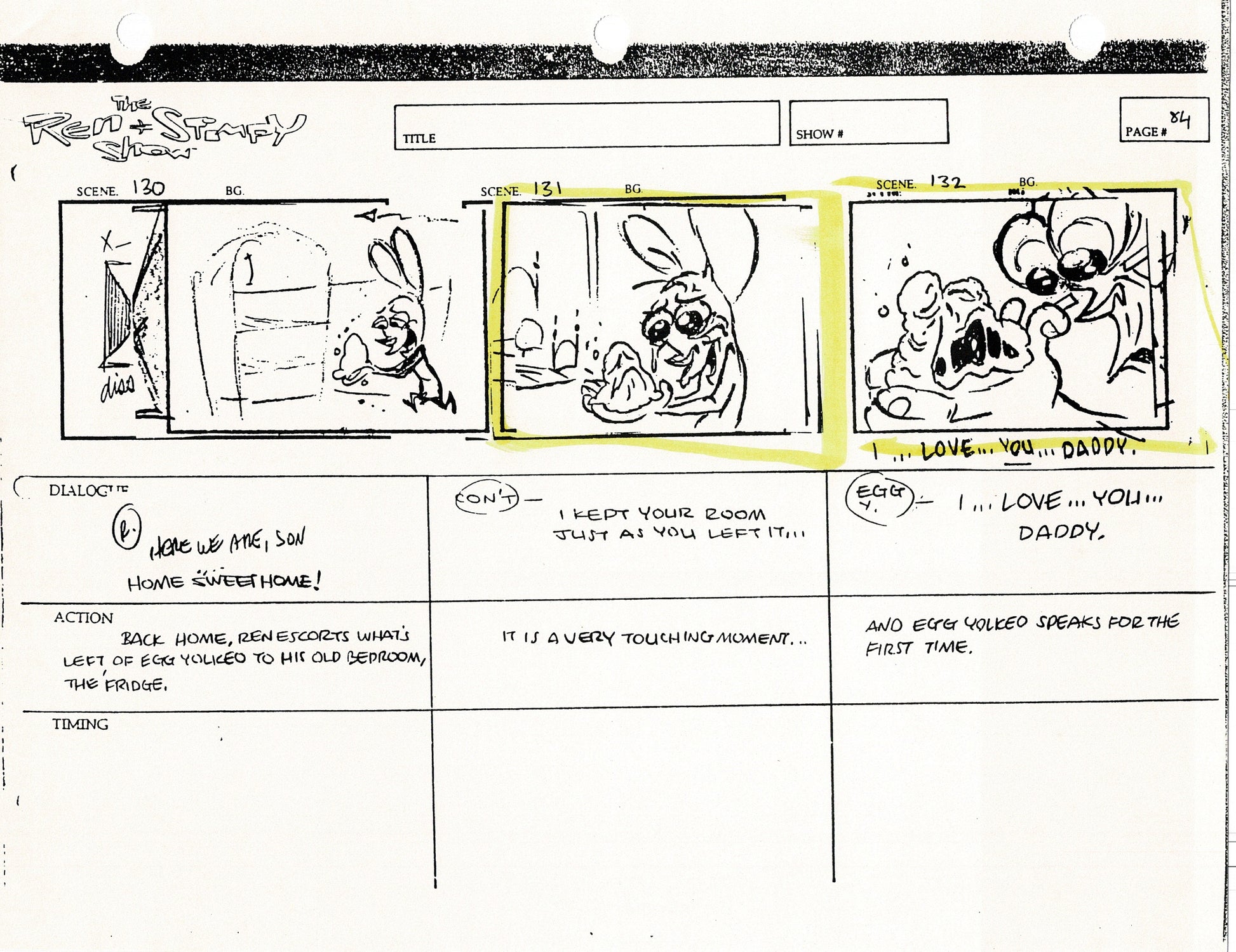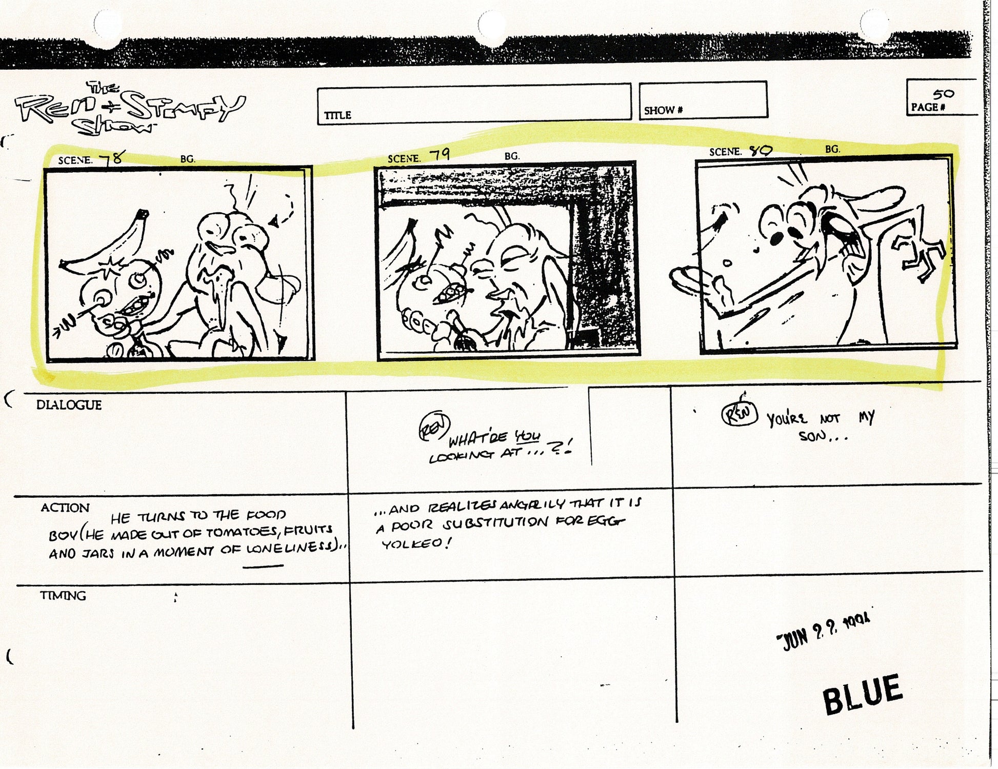Ren and Stimpy Production Storyboard Copy Lot 87 Pgs with Sketch and Signed Nickelodeon 1994 Egg Yolkeo