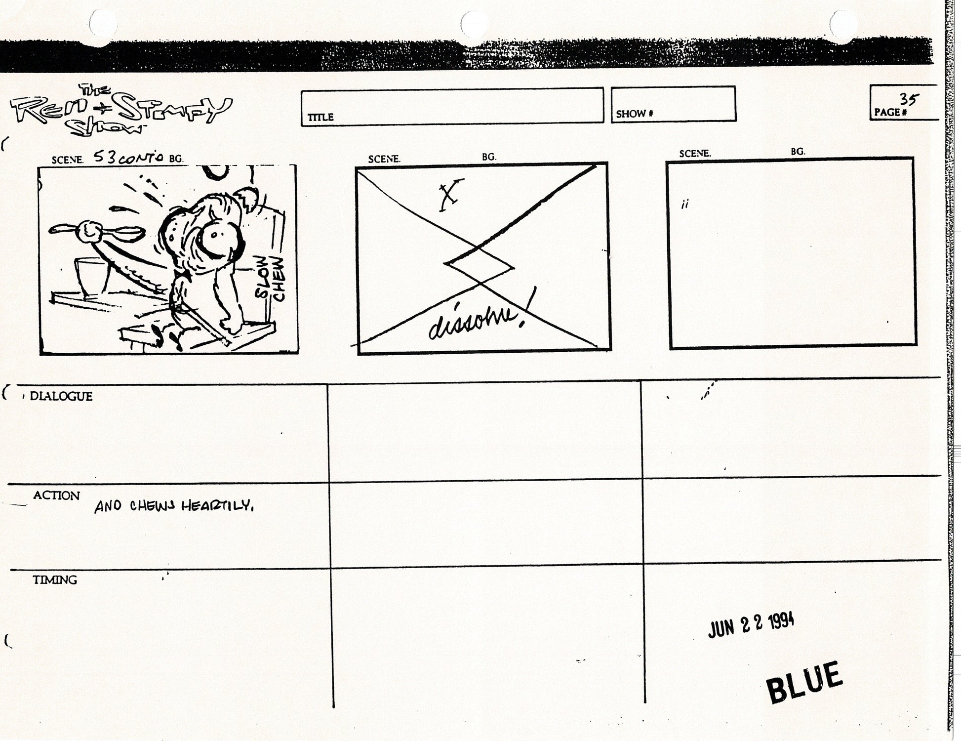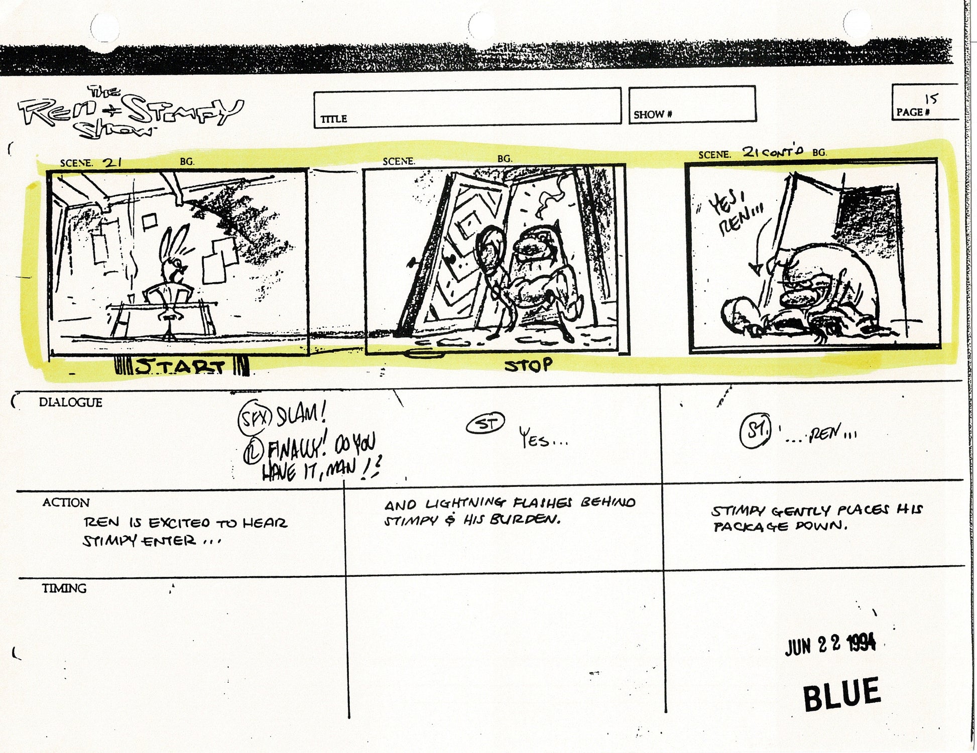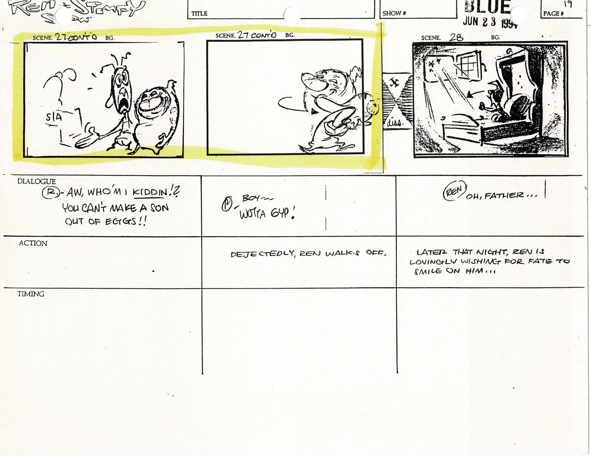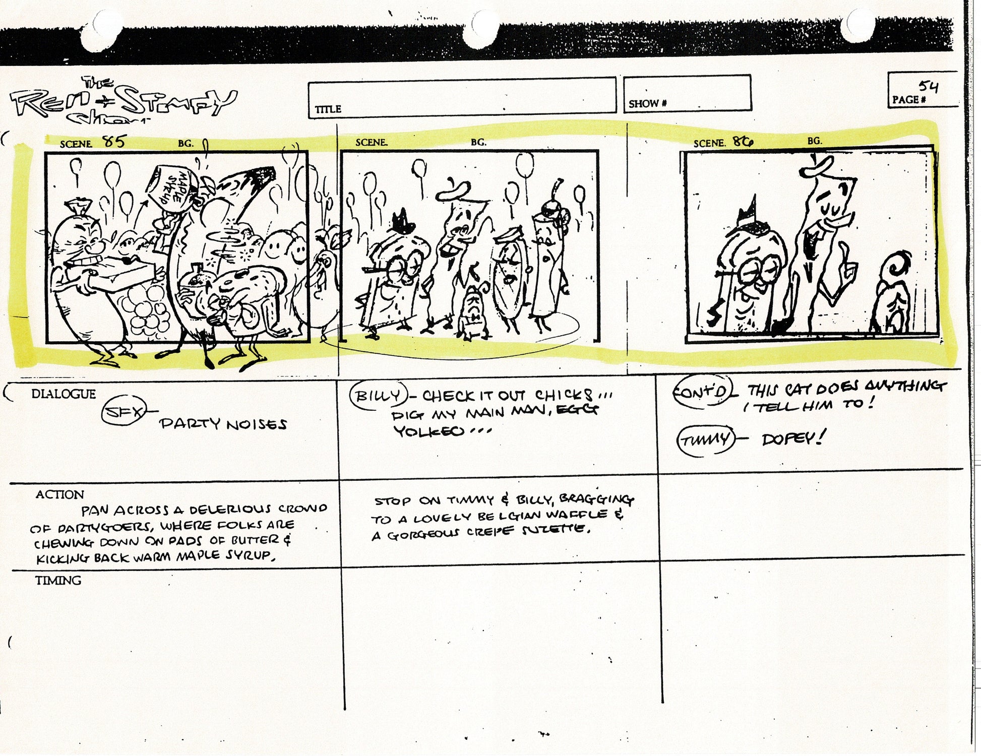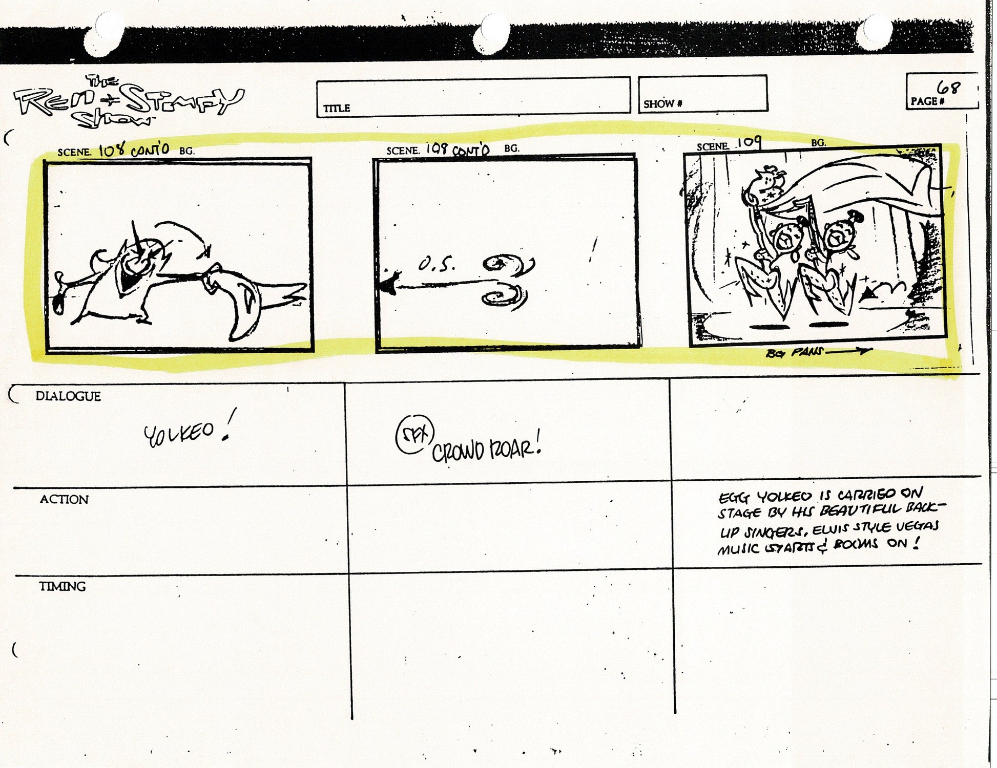 Ren and Stimpy Production Storyboard Copy Lot 87 Pgs with Sketch and Signed Nickelodeon 1994 Egg Yolkeo