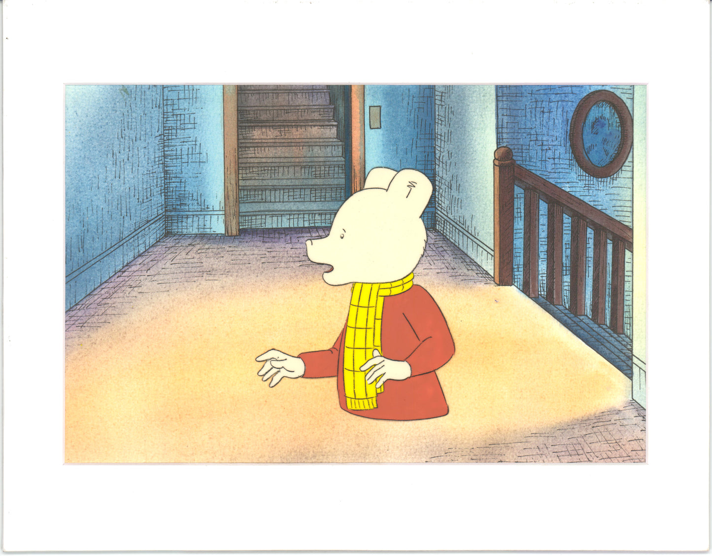 Based on the books by Mary Tourtel. It was on Disney and Nickelodeon in America! This animation cel has the main character and was used under the camera and is on screen in the series! Includes a color laser background. Cel measures approx 10.5" x 12.5" We'll include a Charles Scott Gallery COA.