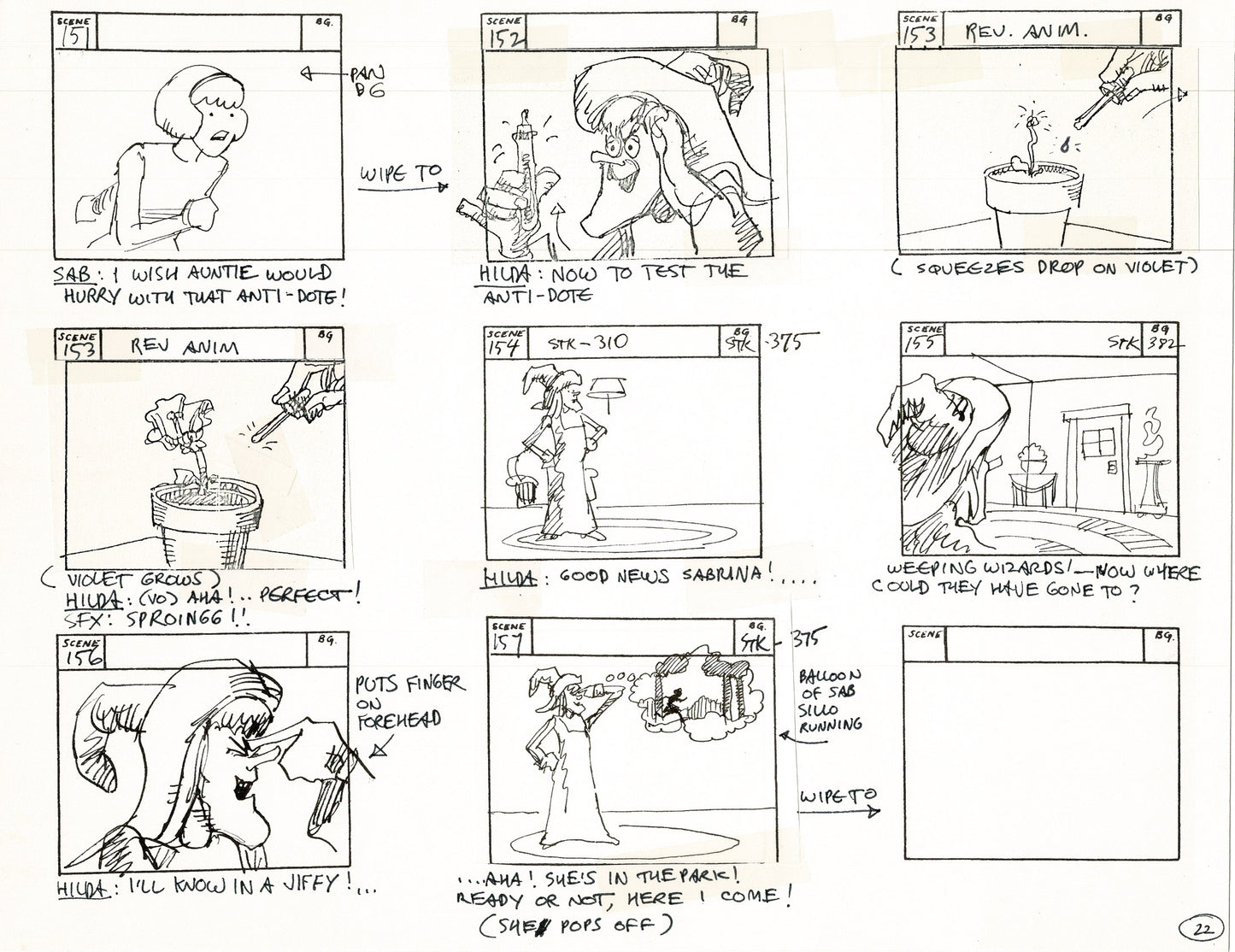 Sabrina the Teenage Witch 1970 Production Animation Storyboard Page Filmation A-018