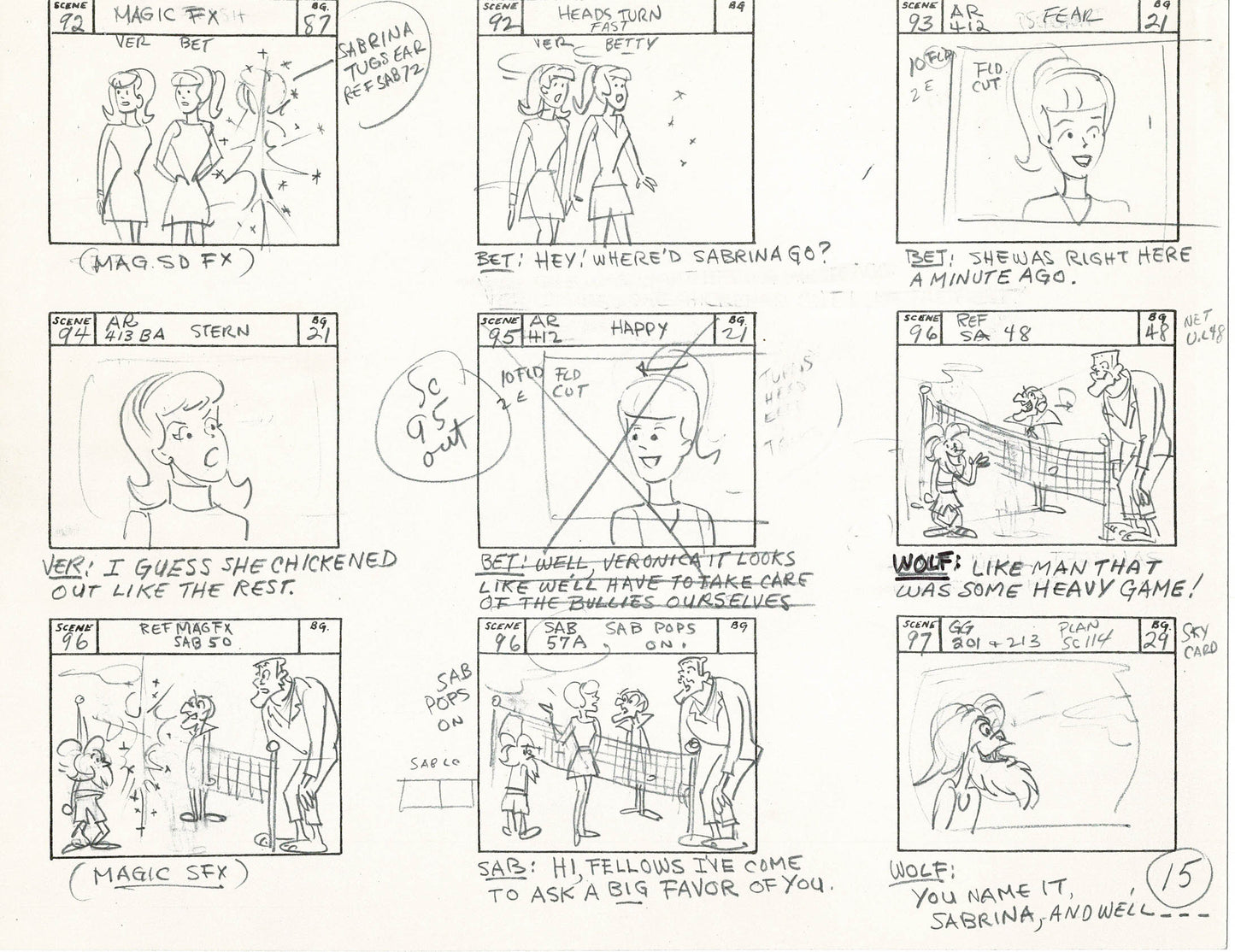 Sabrina The Teenage Witch and Groovie Goolies Storyboard Art Animation Page from Filmation 1970 B-037