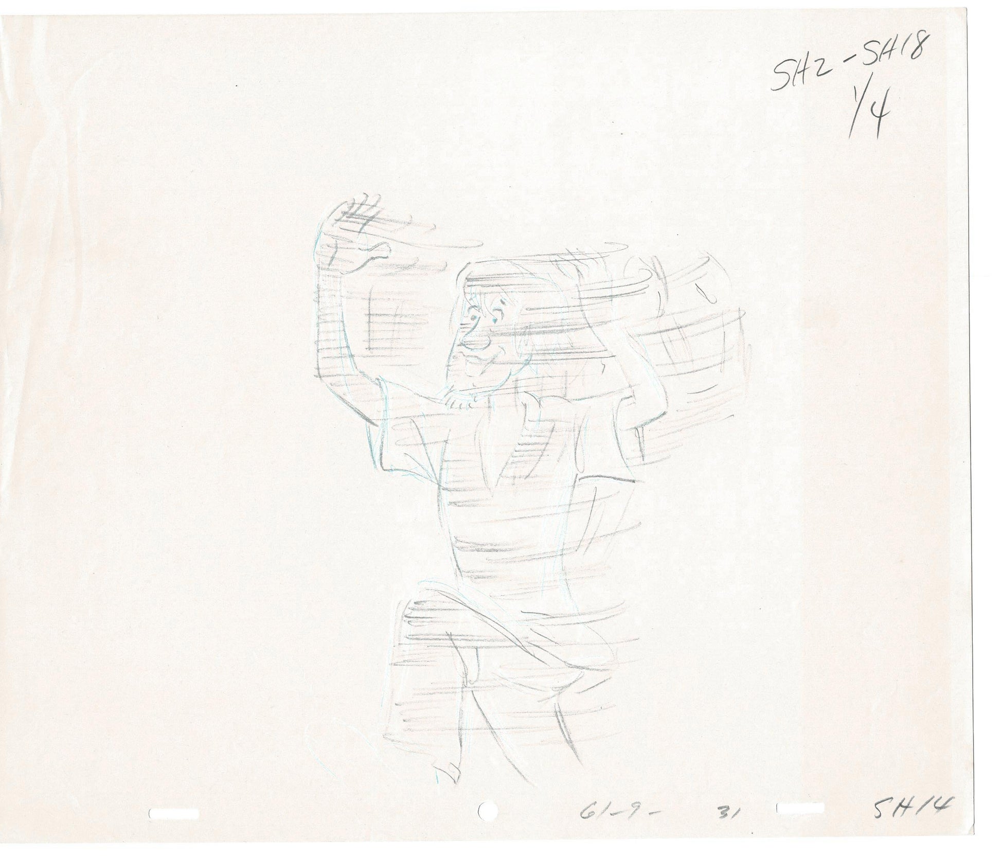 It is from the first season, 1972. The number after "61" at the bottom denotes the episode number (production order). The drawing measures approximately 10.5" x 12.5", and has some production wear (see pictures). All hand-drawn in graphite.