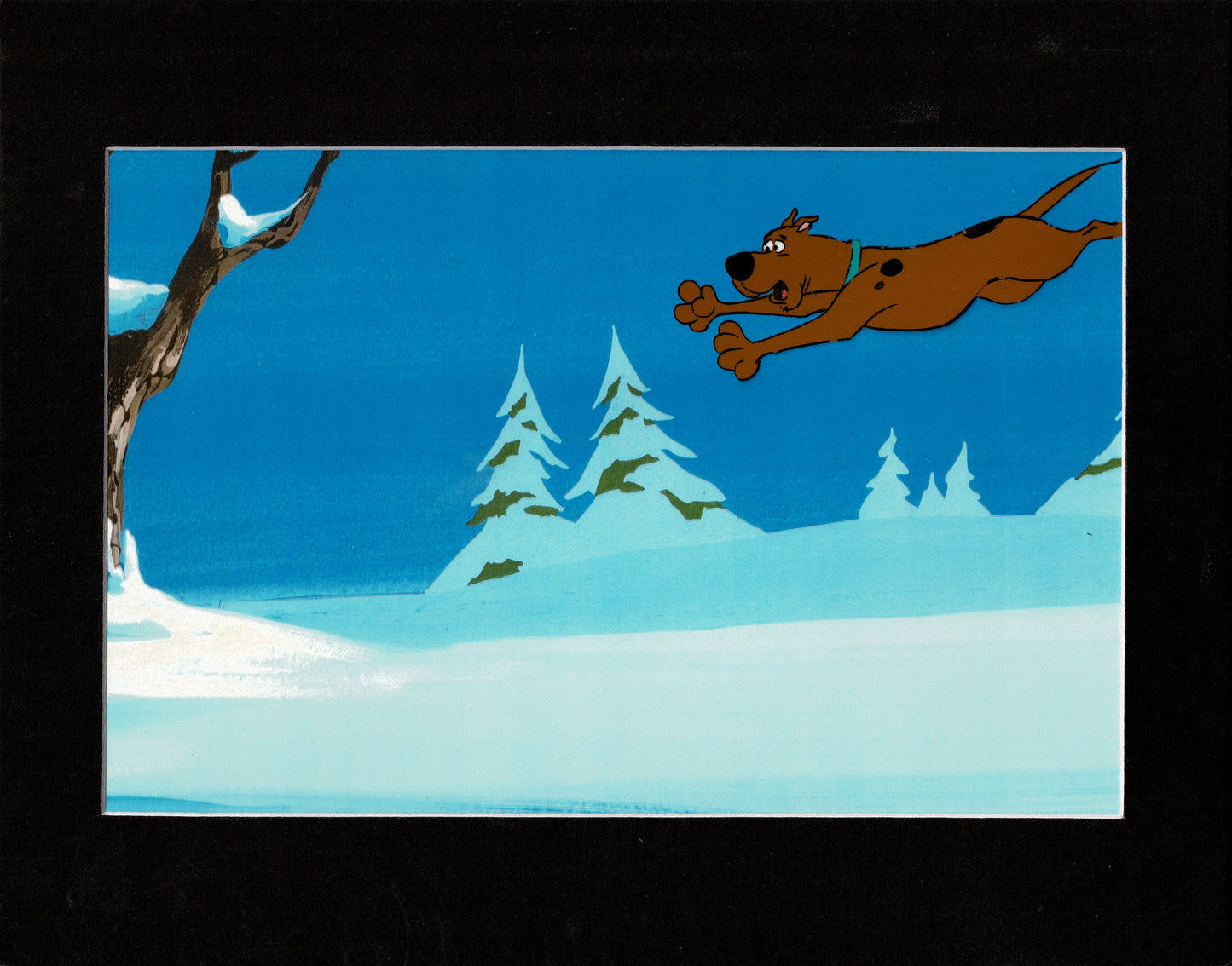 The New Scooby-Doo Movies was only the second incarnation of Scooby Doo! And this a nice full figure cel of Scooby-Doo. It's from the 10th episode with Laurel and Hardy, "The Ghost of Bigfoot." The cel measures approx 10.5" x 12.5". Has some line loss/transfer, paint loss, etc. See picture. Includes a color laser background.