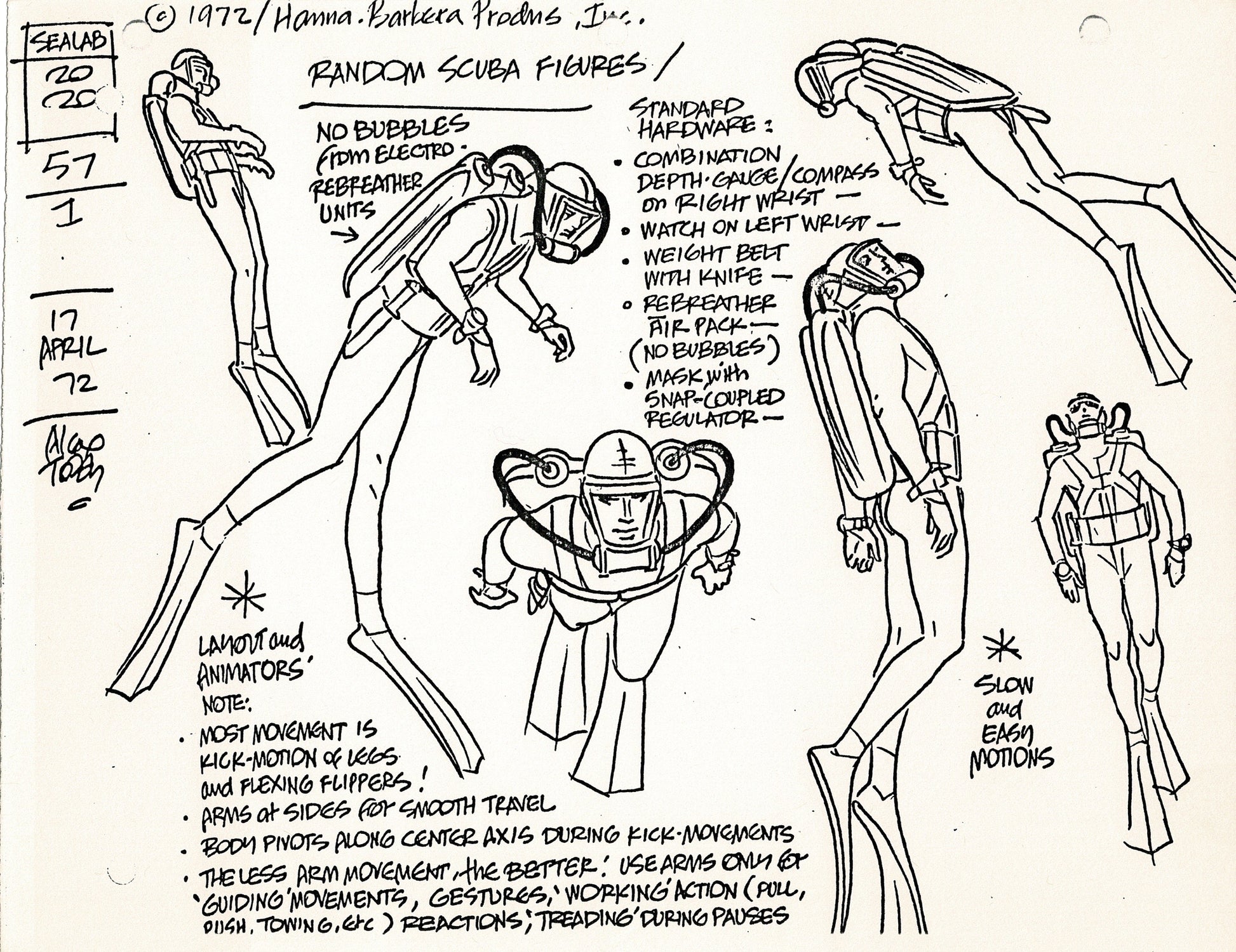 Sealab 2020 1972 Alex Toth Production Model Sheet Copy Lot of 69 Pages from Hanna Barbera