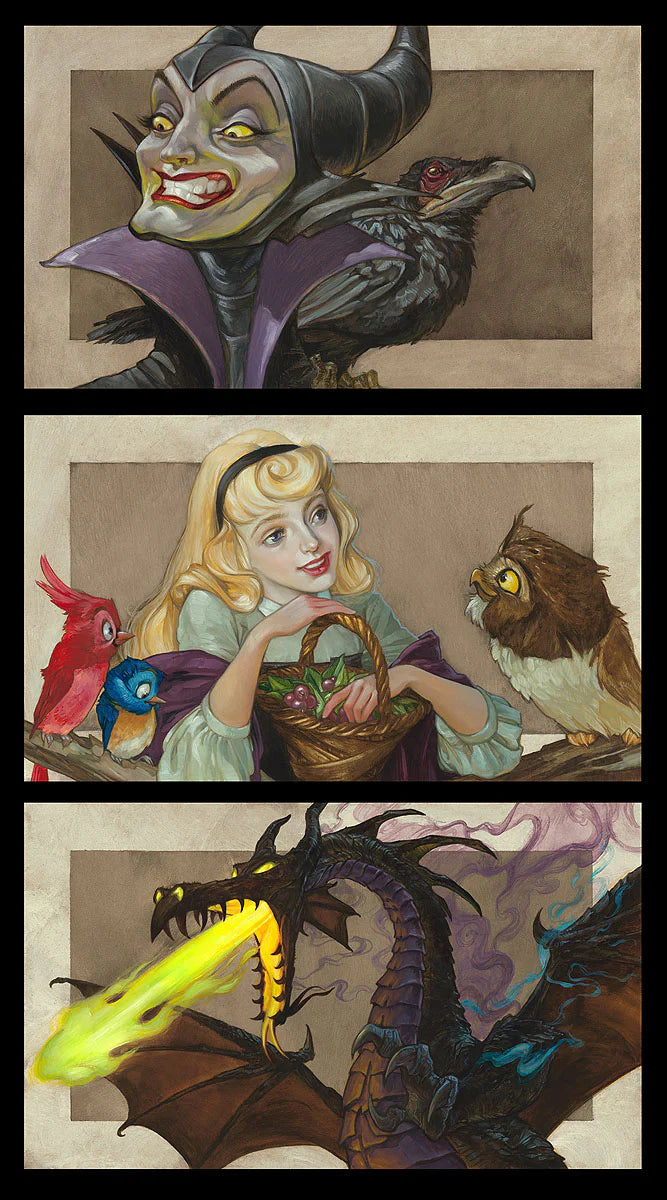 Sleeping Beauty Aurora and Maleficent Walt Disney Fine Art Heather Edwards Signed Limited Edition of 295 Print on Canvas "Versus Vol. 1"
