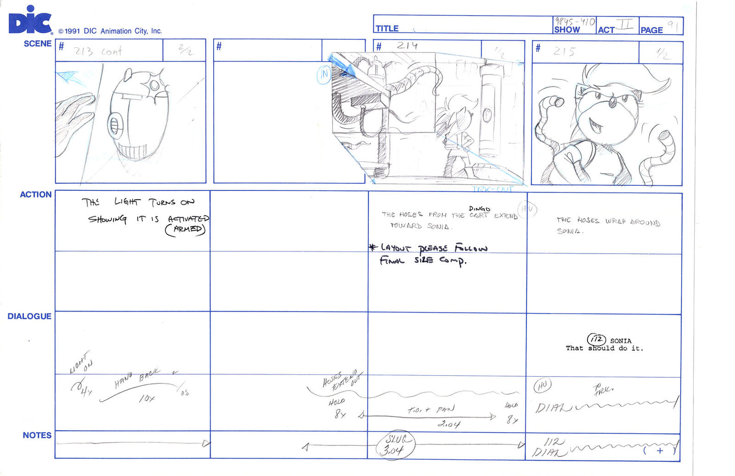 Sonic Underground Huge Hand-Drawn Production Storyboard 1999 from DIC Used to Make the Cartoon Pg 91