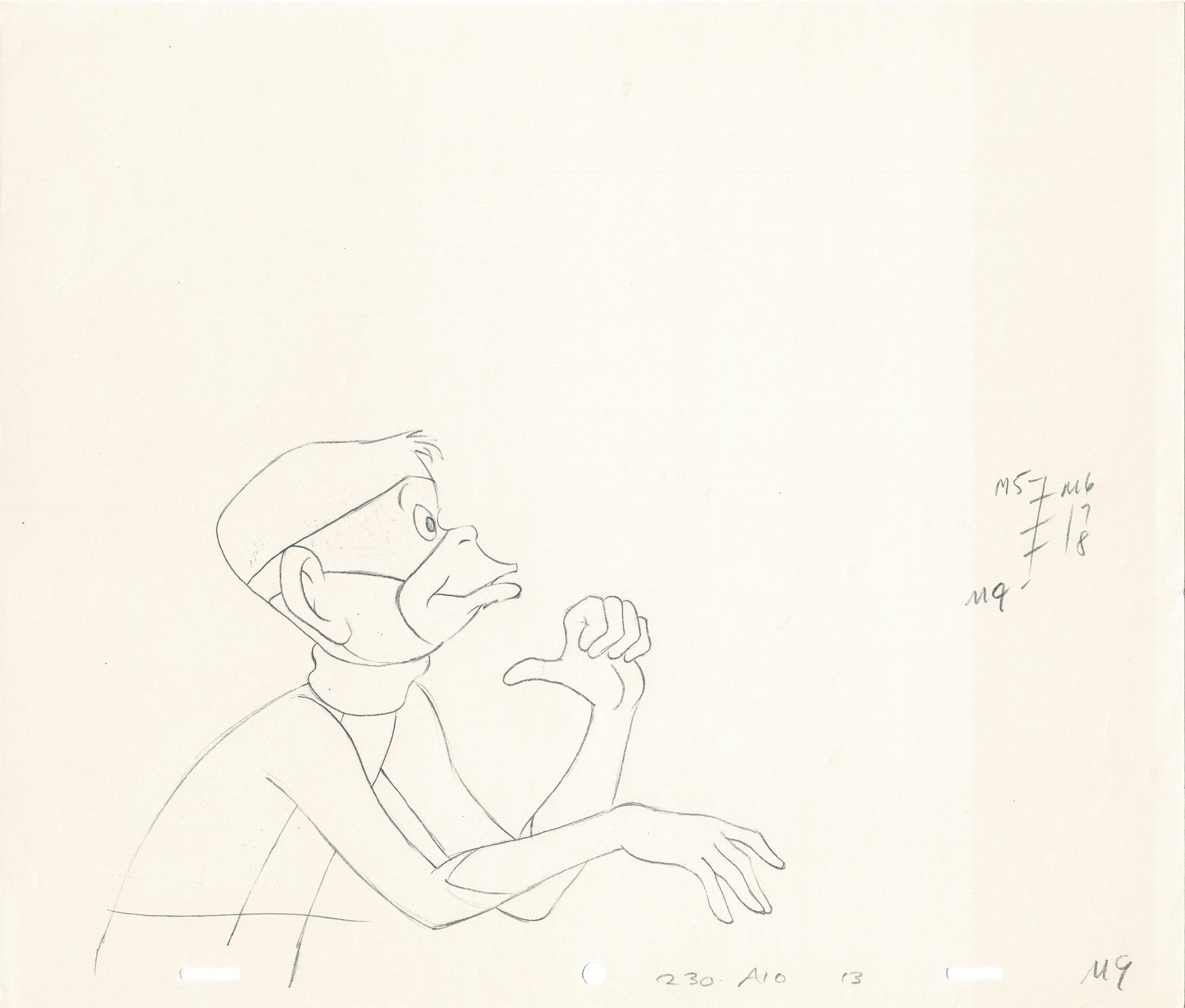 An original production drawing of Blip! Hand-drawn by an animator and one-of-a-kind, used to make the cel that you see on screen! This is from the 1981 Space Stars version of this iconic cartoon. Measures approximately 10.5" x 12.5". Has some production wear (see scan).