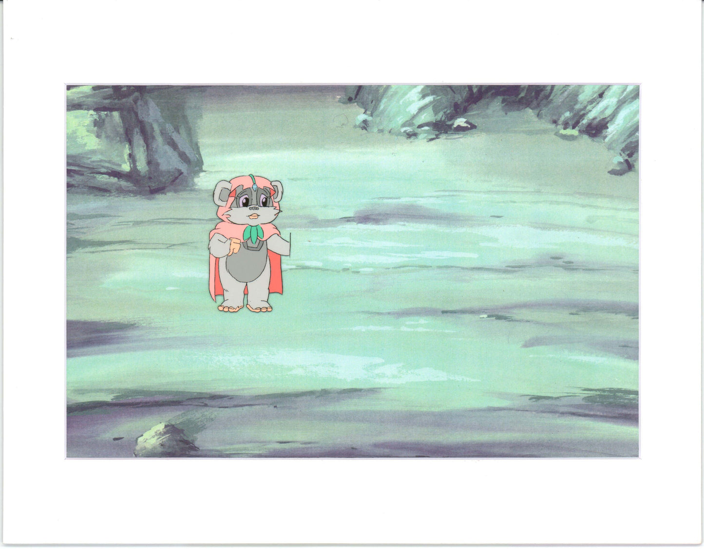 The Ewoks were introduced, of course, in Star Wars Episode VI - The Return of the Jedi. And this is a wonderful, screen-used cel setup. Comes with production drawing(s) and a color laser background. And we'll include a Charles Scott Gallery COA.