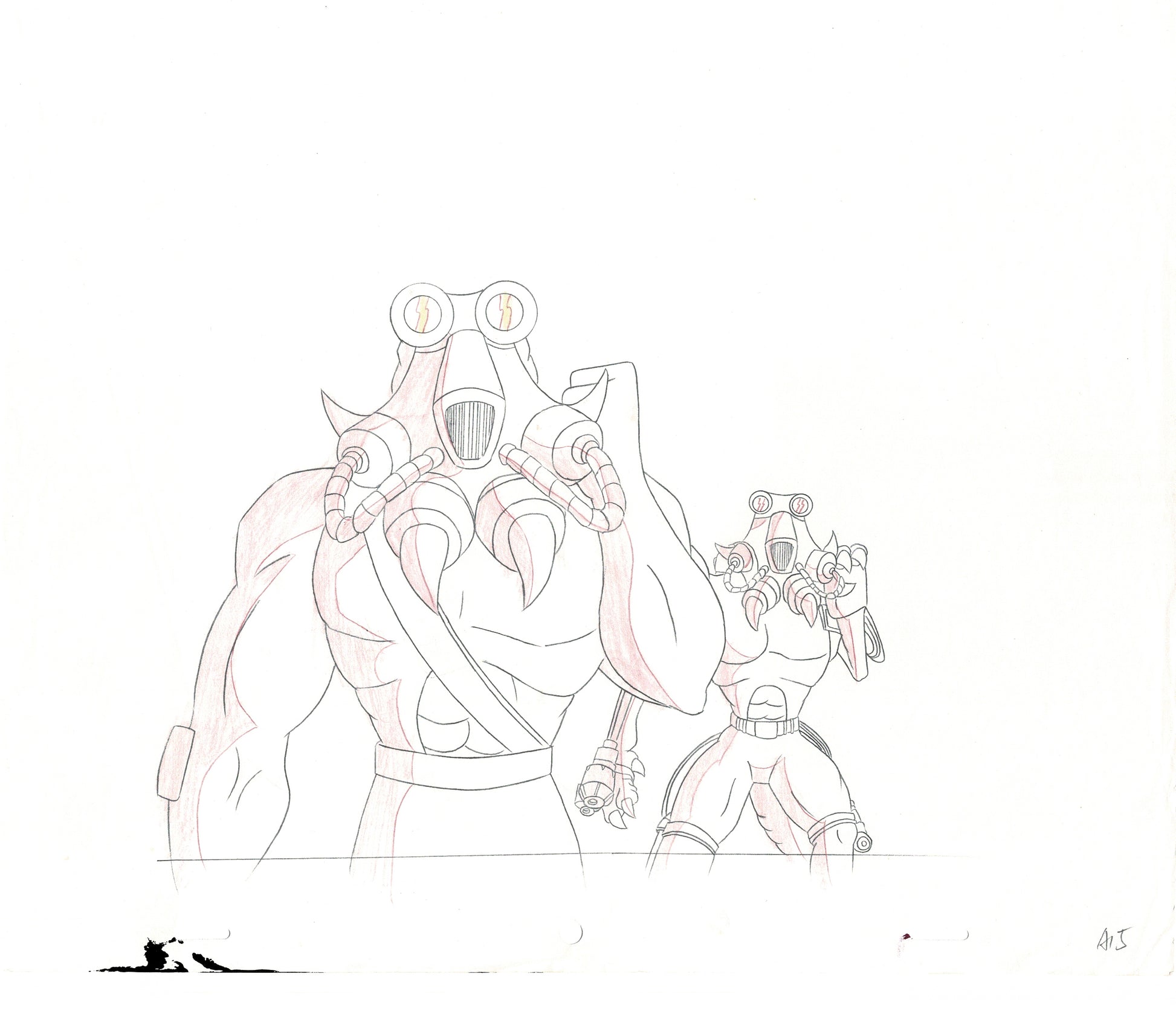 A nice production drawing actually used in making the cartoon. Measures 10 3/4" x 13". Some drawings have tape, edge creasing, occasional folds, smudges, cut-out/tape-downs, etc. These were USED to make the show!