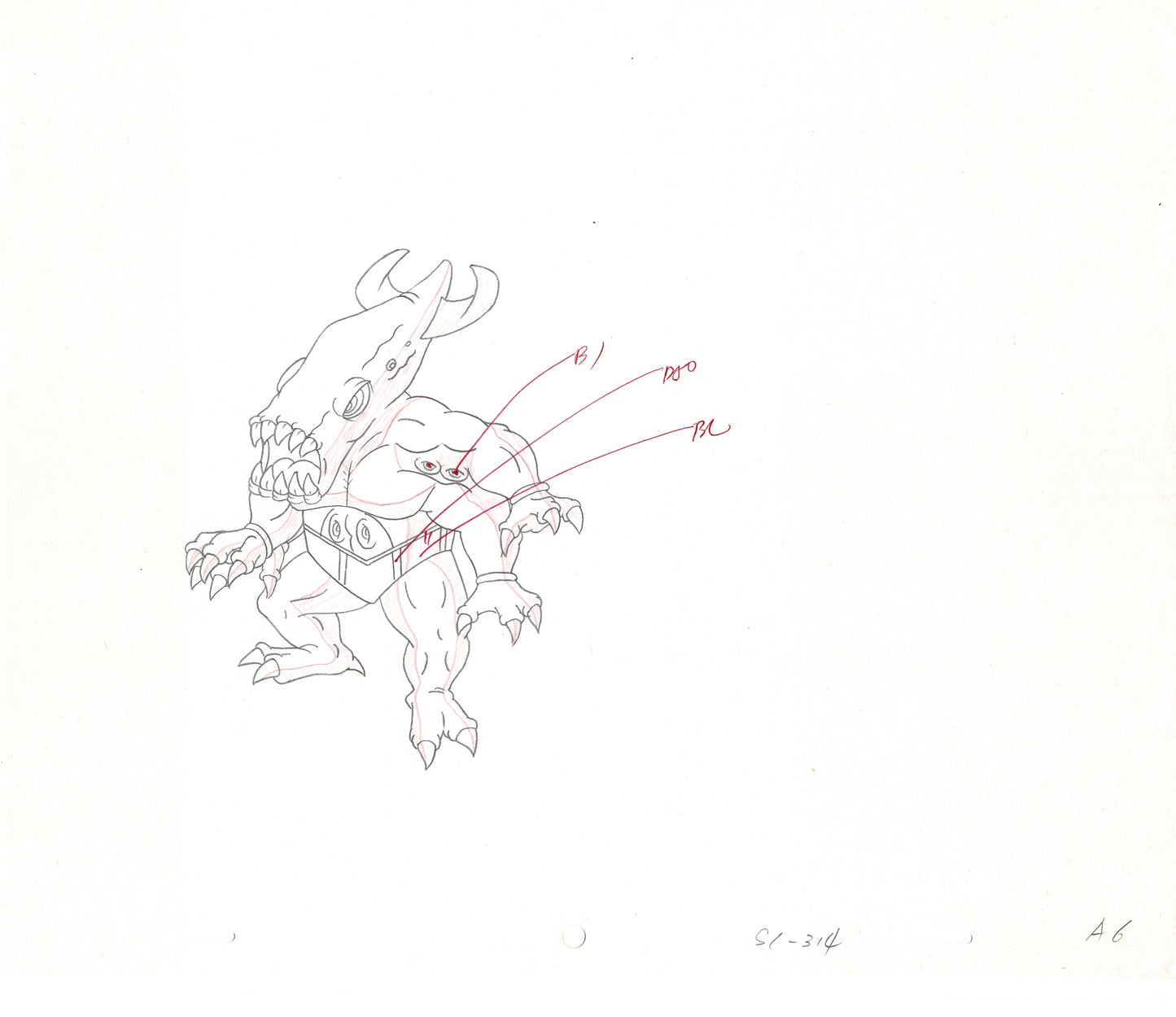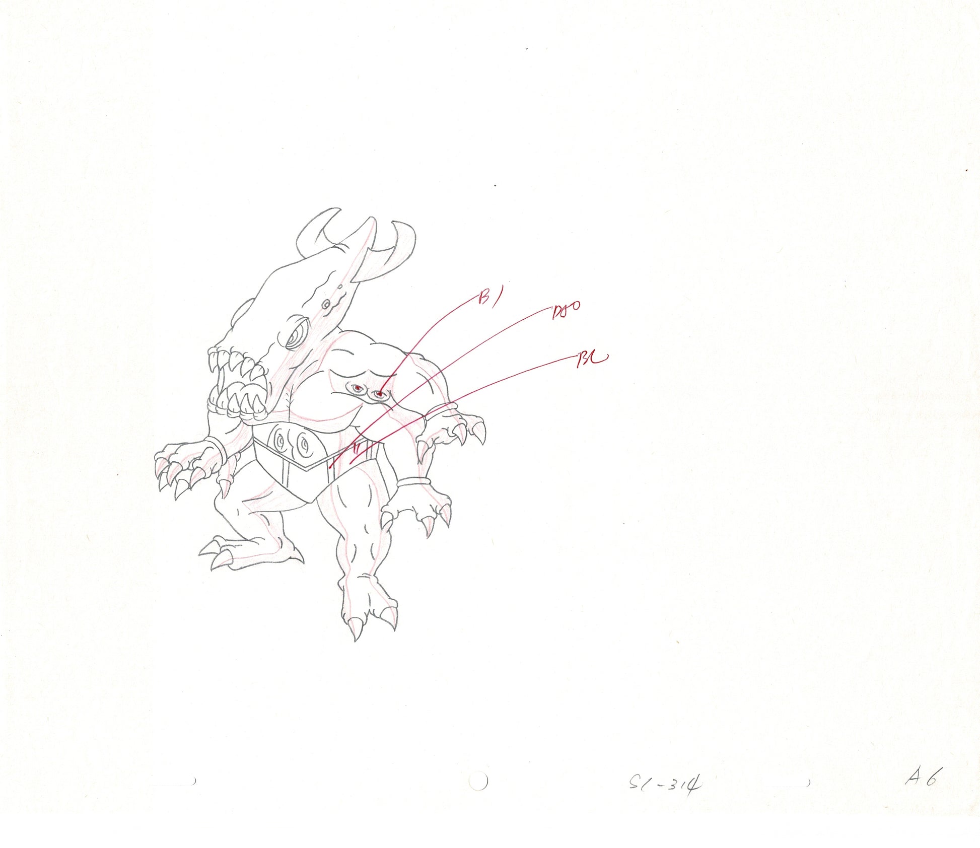 A nice production drawing actually used in making the cartoon. Measures 10 3/4" x 13". Some drawings have tape, edge creasing, occasional folds, smudges, cut-out/tape-downs, etc. These were USED to make the show!