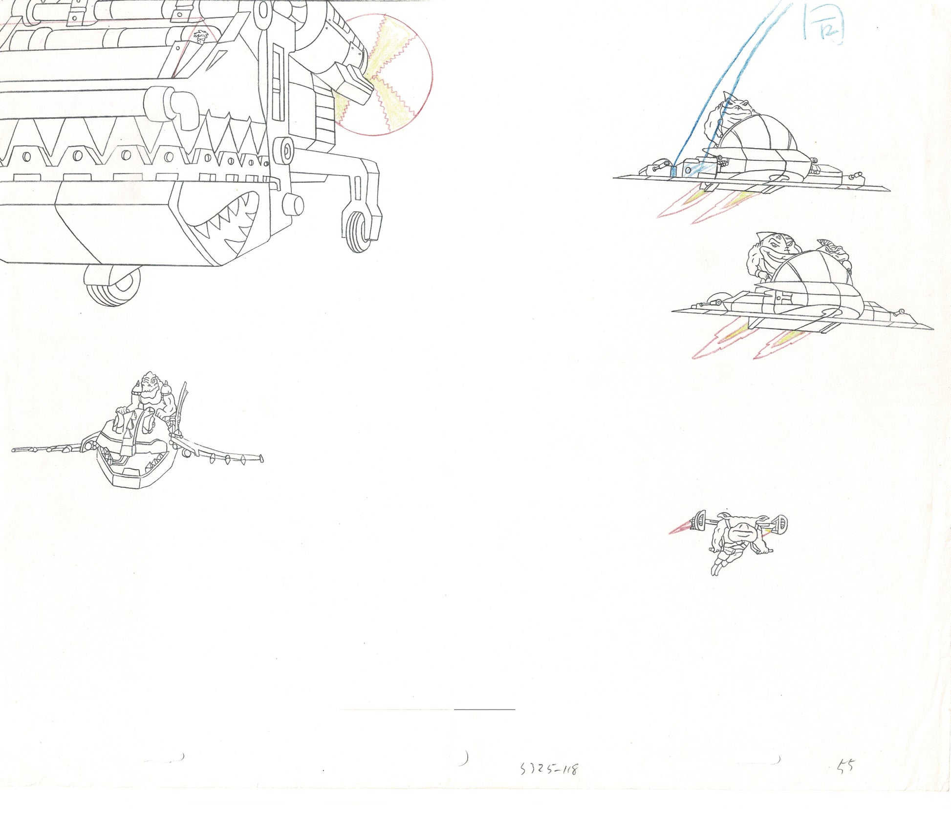 A nice production drawing actually used in making the cartoon. Measures 10 3/4" x 13". Some drawings have tape, edge creasing, occasional folds, smudges, cut-out/tape-downs, etc. These were USED to make the show!