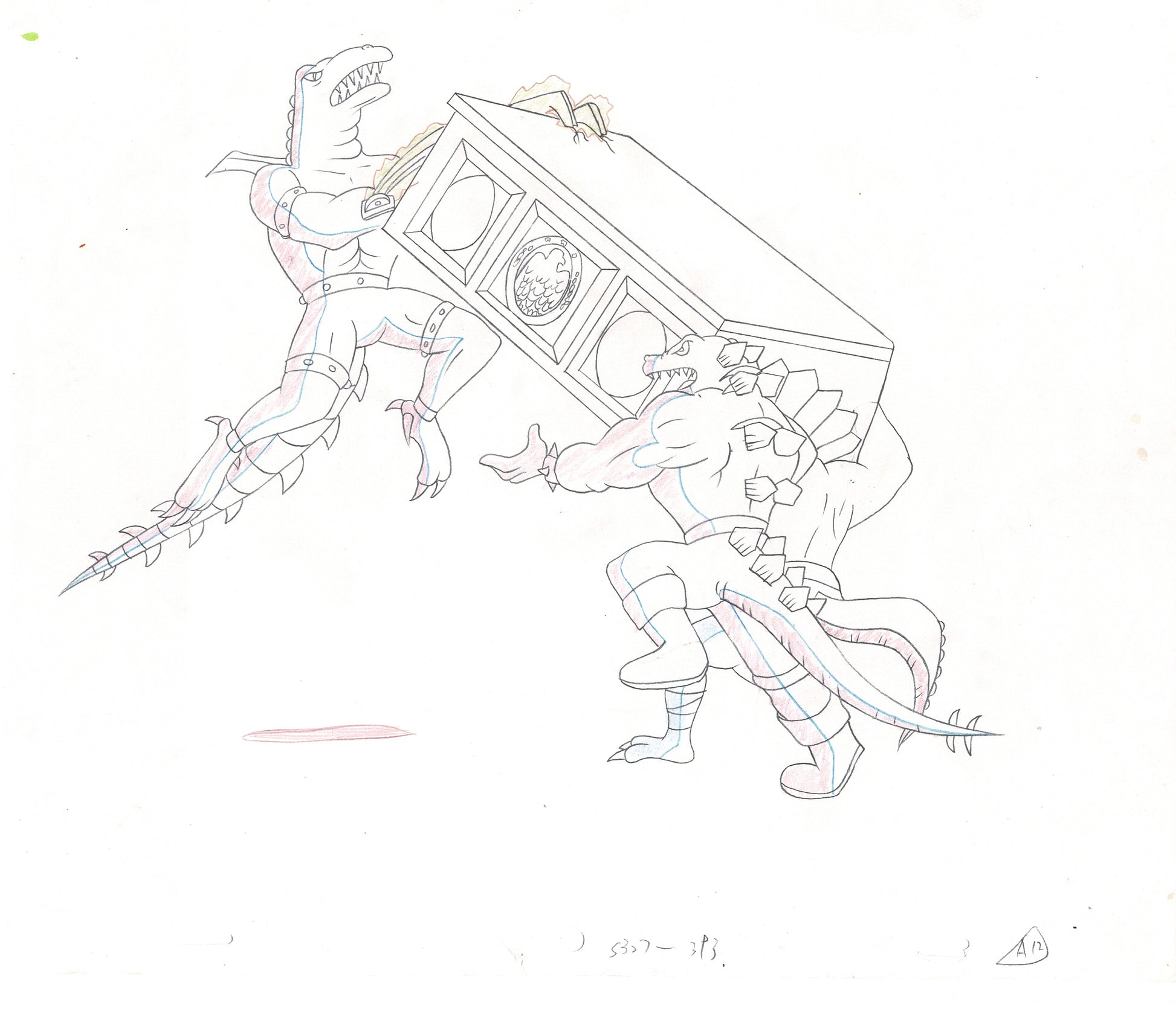 A nice production drawing actually used in making the cartoon. Measures 10 3/4" x 13". Some drawings have tape, edge creasing, occasional folds, smudges, cut-out/tape-downs, etc. These were USED to make the show!