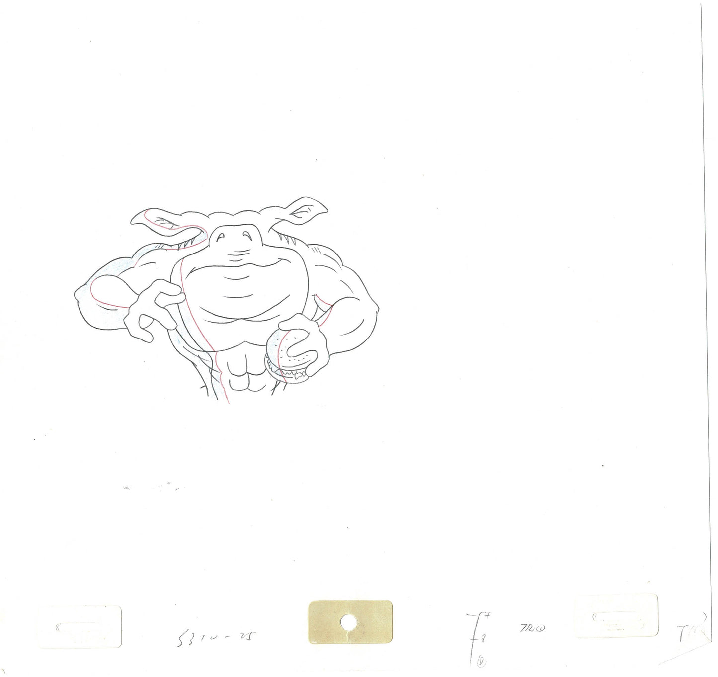 A nice production drawing actually used in making the cartoon. Measures 10" x 10.75". Some drawings have edge creasing, occasional foldes (not on the art but also not visible in the photos), smudges, etc. These were USED to make the show!