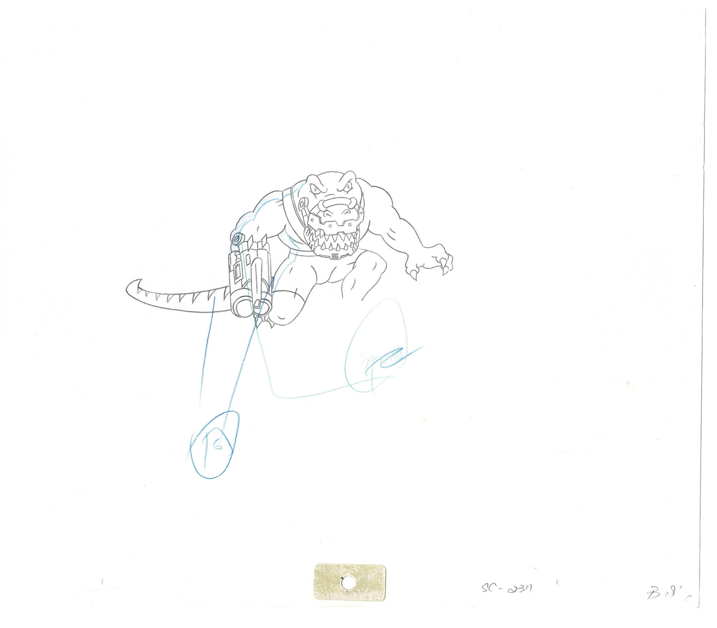 A nice production drawing actually used in making the cartoon. Measures 10.75" x 12.5". Some drawings have edge creasing, occasional foldes (not on the art but also not visible in the photos), smudges, etc. These were USED to make the show!