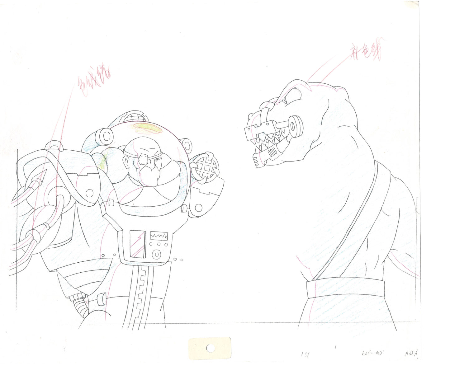 A nice production drawing actually used in making the cartoon. Measures 10.75" x 13". Some drawings have edge creasing, occasional foldes (not on the art but also not visible in the photos), smudges, etc. These were USED to make the show!