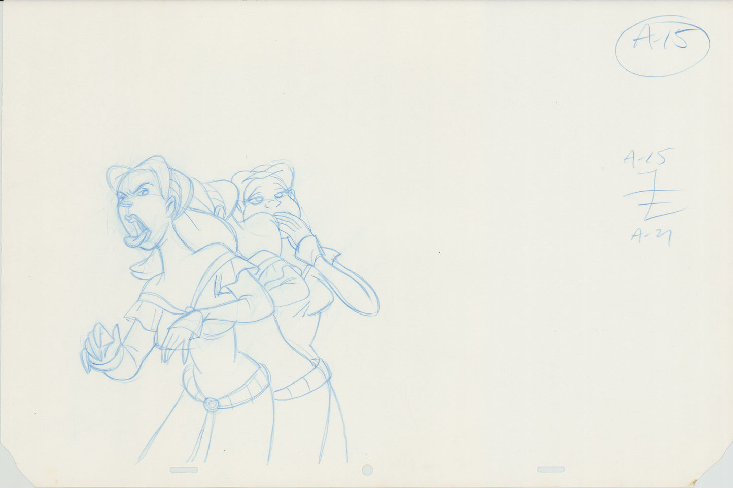 This is a nice production animation cel drawing used to make the movie! It measures approximately 16" x 10 3/4". Note that the bottom corners are clipped on these - which seems to be standard for this production, and some others like Titan A.E.