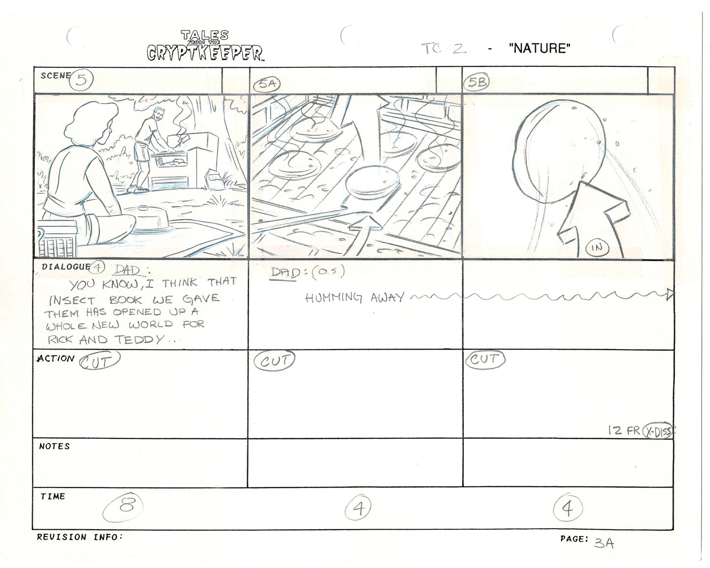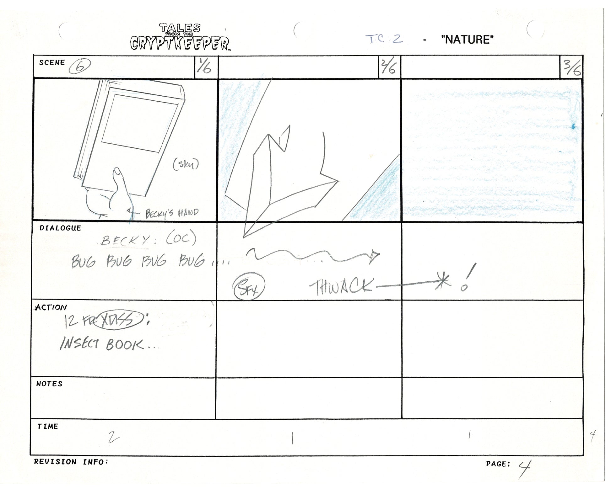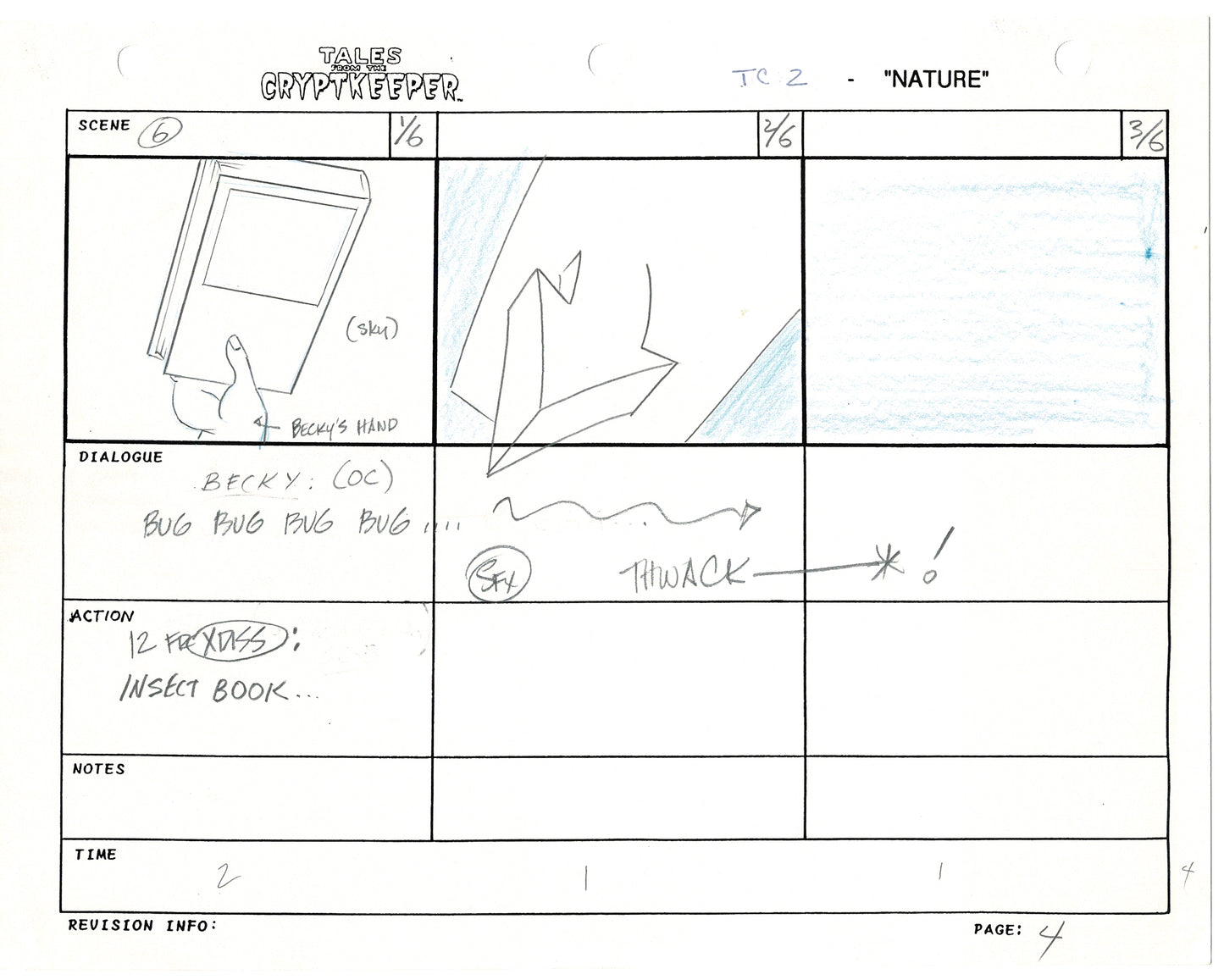 Most folks don't realize just how rare original storyboards are. Remember - there may be only ONE set of originals from an episode, versus all the cels and drawings. And this is a pair of rare, original hand-drawn, storyboards from the 1993-1994 Nelvana show. Specifically from the SECOND episode, "Nature" from 1993.