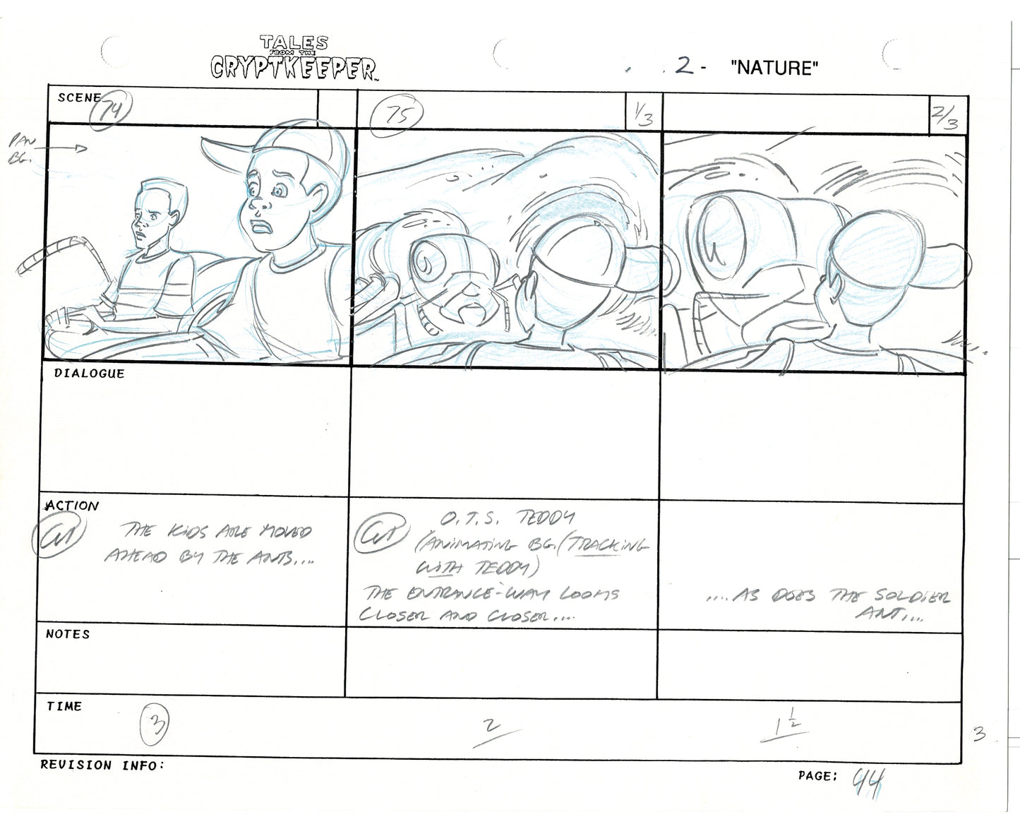 Most folks don't realize just how rare original storyboards are. Remember - there may be only ONE set of originals from an episode, versus all the cels and drawings. And this is a pair of rare, original hand-drawn, storyboards from the 1993-1994 Nelvana show. Specifically from the SECOND episode, "Nature" from 1993.