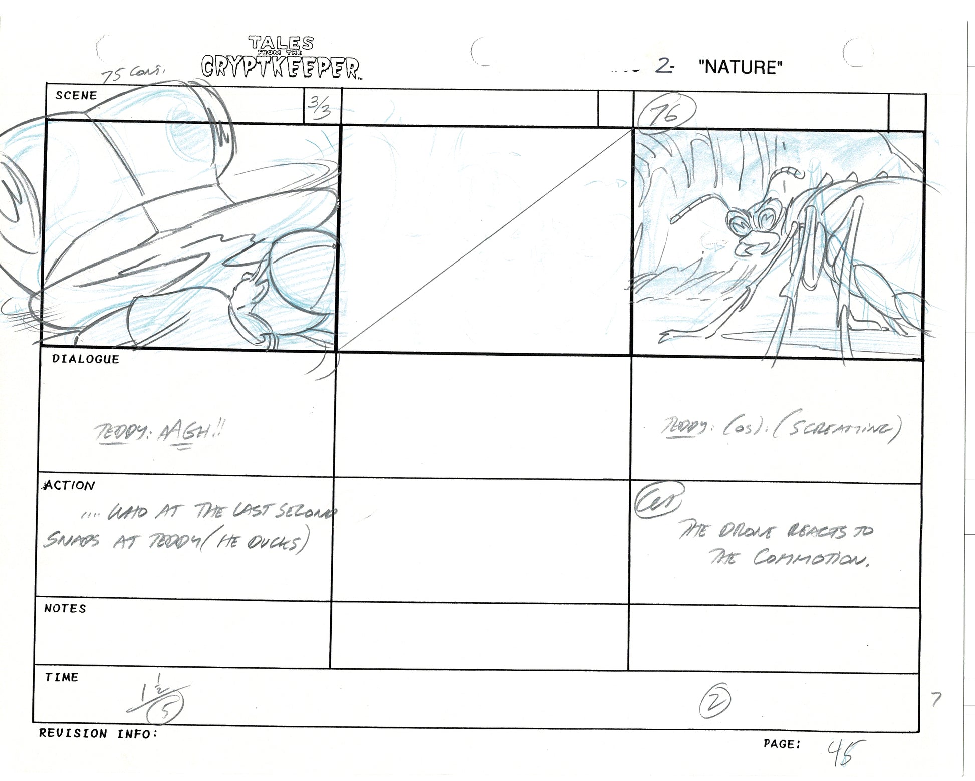 Tales From The Cryptkeeper 2 LOT Hand-Drawn Storyboards Nelvana 1993 B046-047