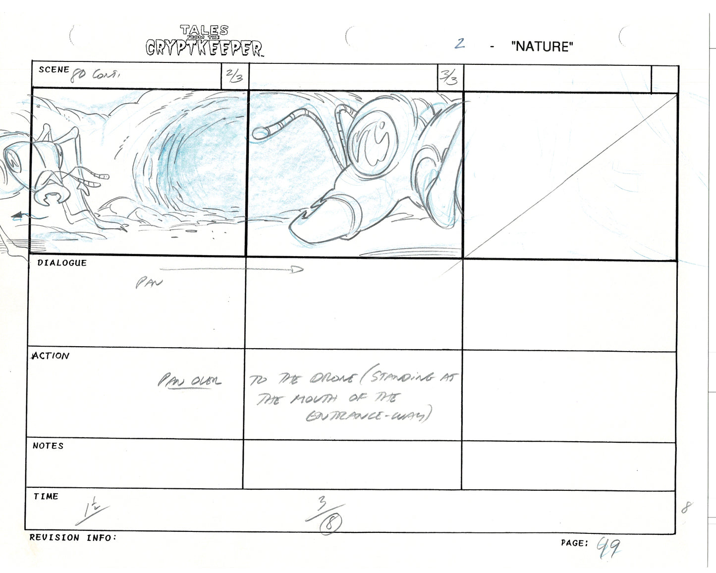 Most folks don't realize just how rare original storyboards are. Remember - there may be only ONE set of originals from an episode, versus all the cels and drawings. And this is a pair of rare, original hand-drawn, storyboards from the 1993-1994 Nelvana show. Specifically from the SECOND episode, "Nature" from 1993.