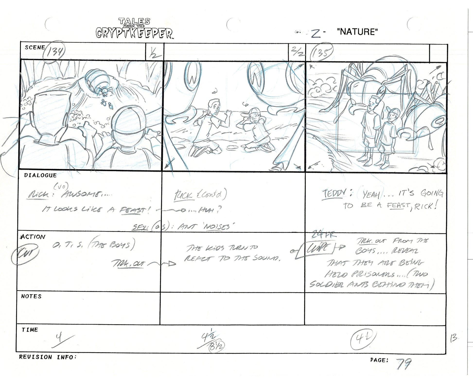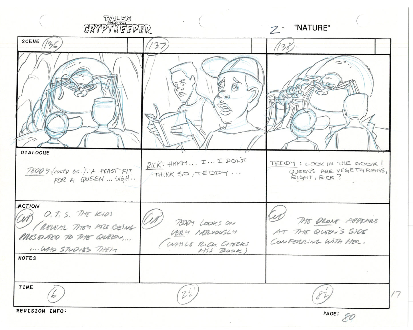 Most folks don't realize just how rare original storyboards are. Remember - there may be only ONE set of originals from an episode, versus all the cels and drawings. And this is a pair of rare, original hand-drawn, storyboards from the 1993-1994 Nelvana show. Specifically from the SECOND episode, "Nature" from 1993.