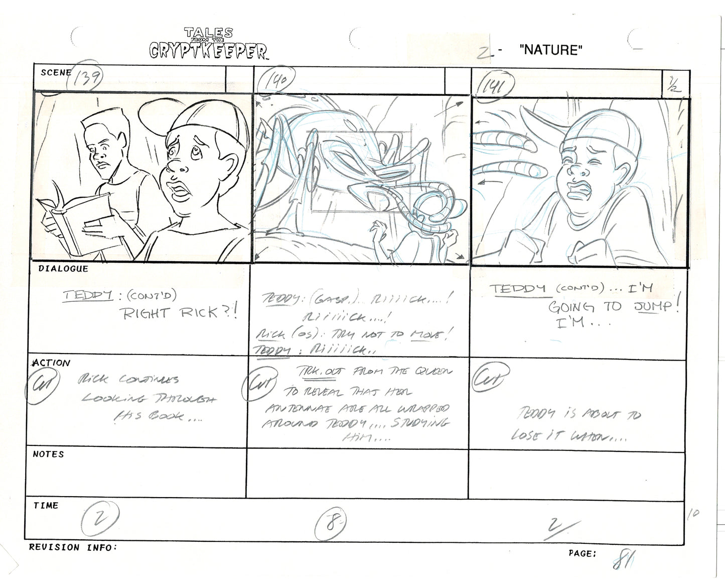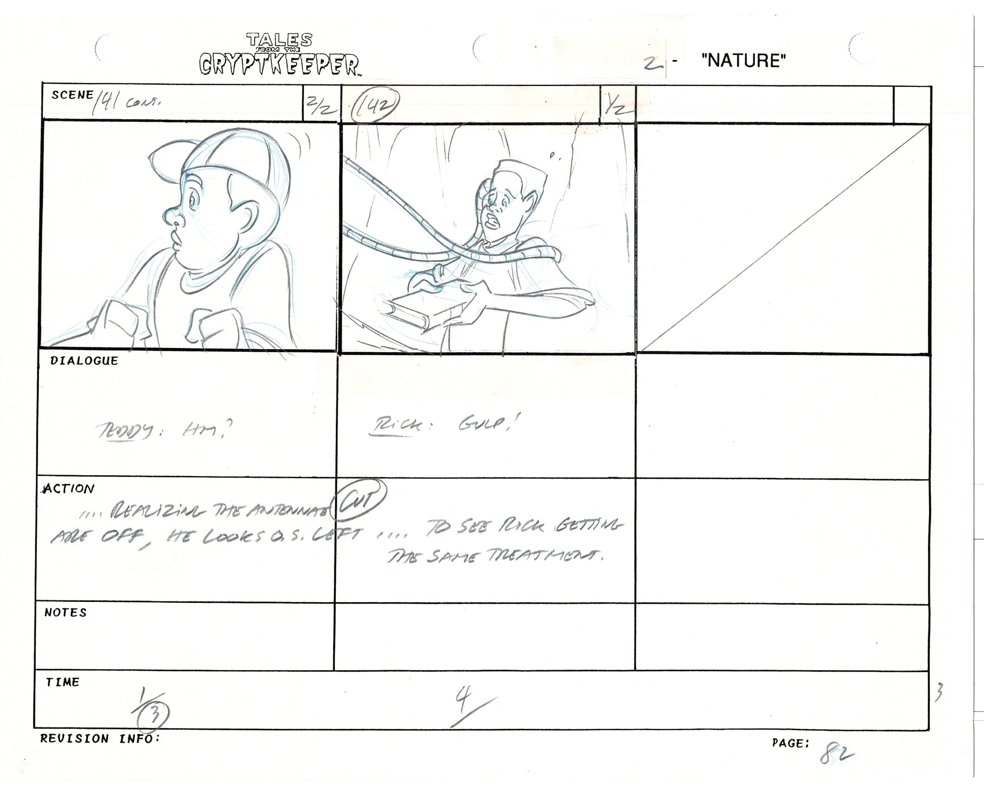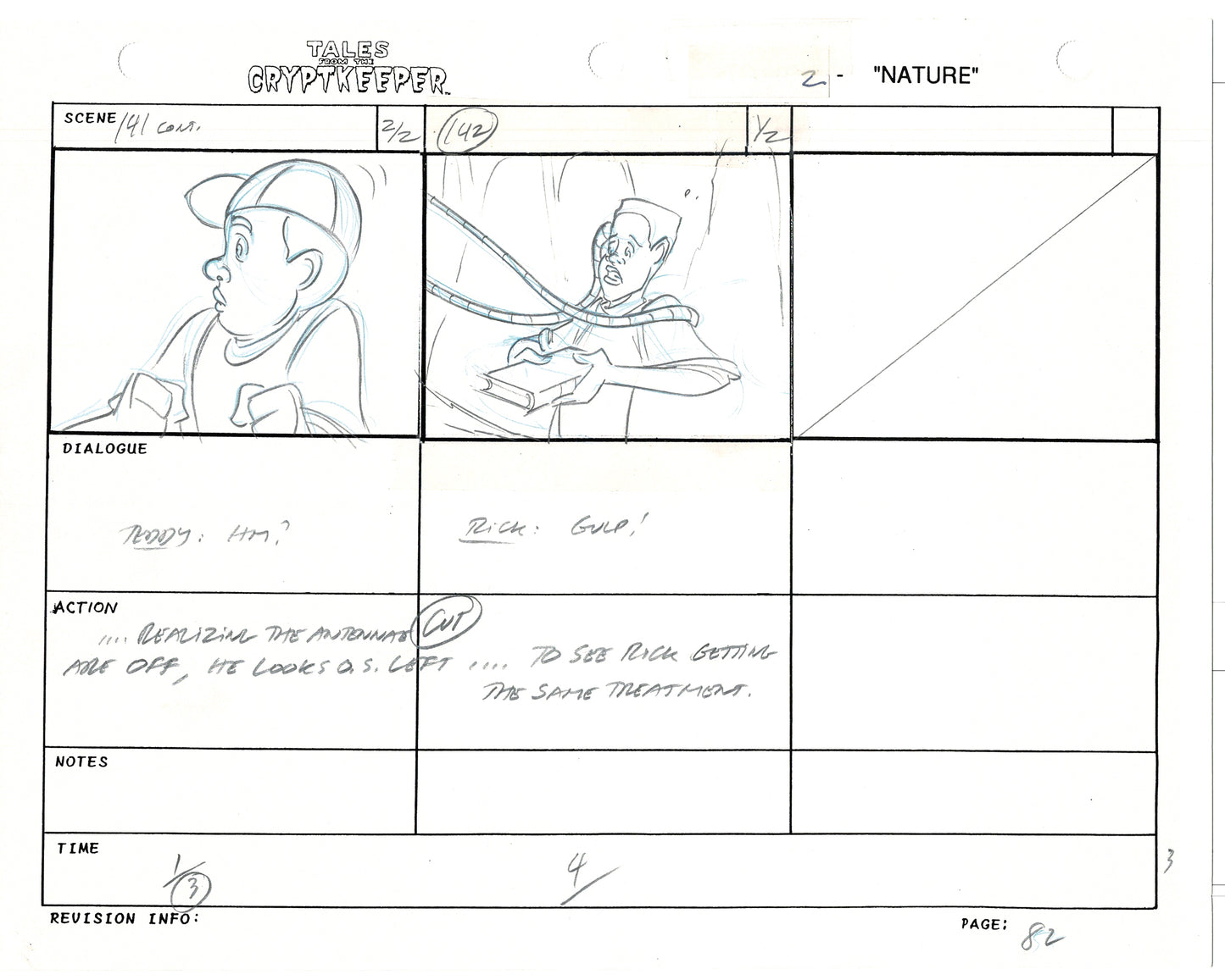 Most folks don't realize just how rare original storyboards are. Remember - there may be only ONE set of originals from an episode, versus all the cels and drawings. And this is a pair of rare, original hand-drawn, storyboards from the 1993-1994 Nelvana show. Specifically from the SECOND episode, "Nature" from 1993.