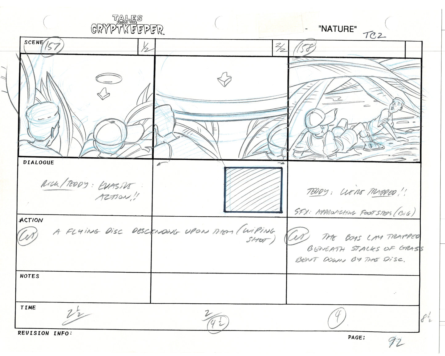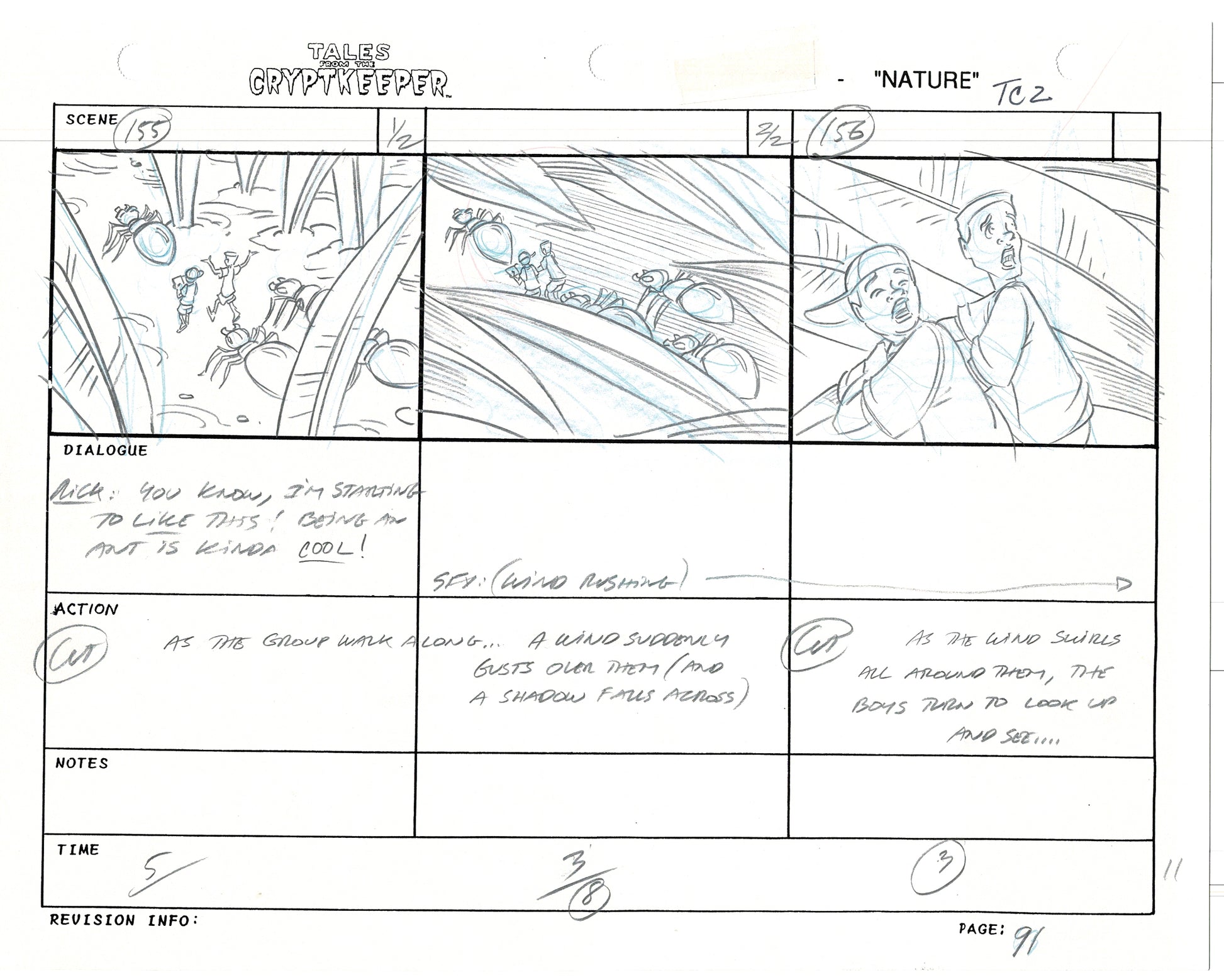 Most folks don't realize just how rare original storyboards are. Remember - there may be only ONE set of originals from an episode, versus all the cels and drawings. And this is a pair of rare, original hand-drawn, storyboards from the 1993-1994 Nelvana show. Specifically from the SECOND episode, "Nature" from 1993.