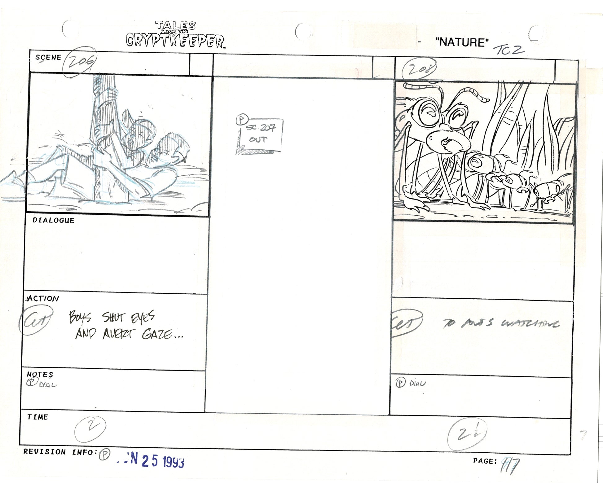 Most folks don't realize just how rare original storyboards are. Remember - there may be only ONE set of originals from an episode, versus all the cels and drawings. And this is a pair of rare, original hand-drawn, storyboards from the 1993-1994 Nelvana show. Specifically from the SECOND episode, "Nature" from 1993.
