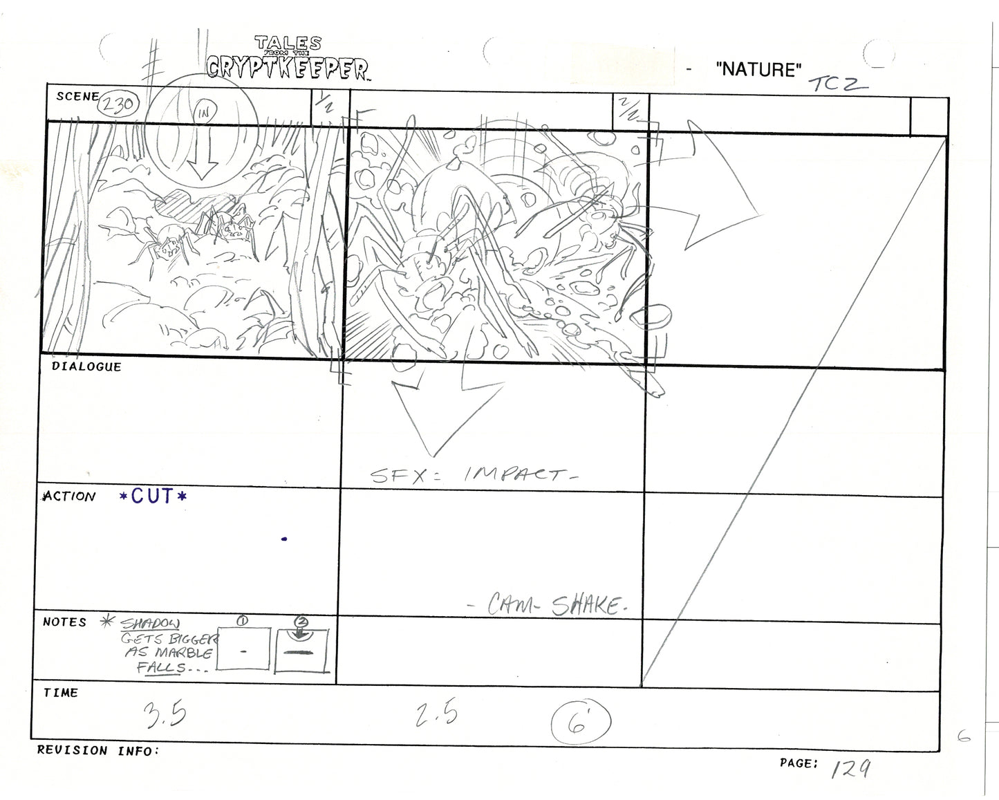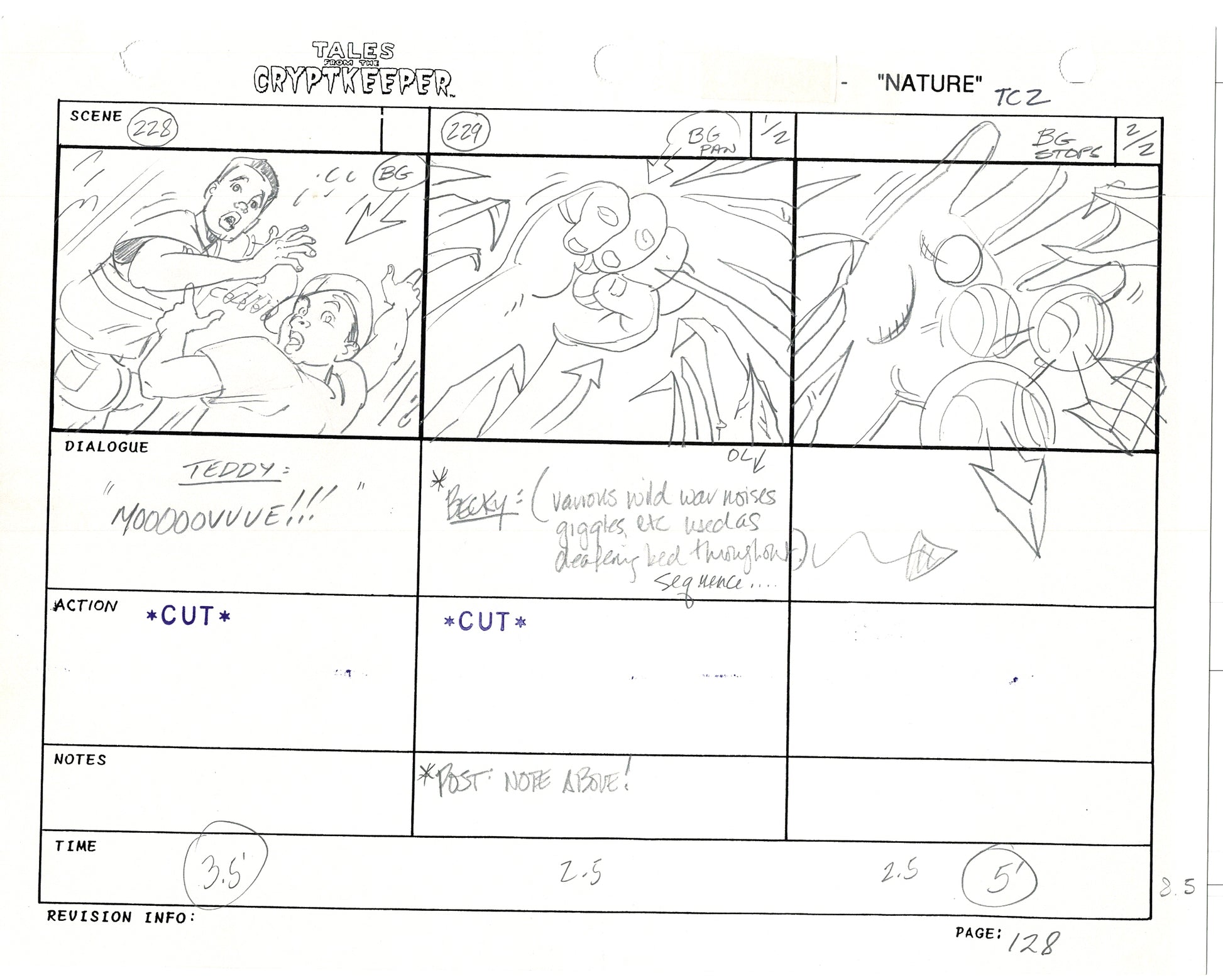 Most folks don't realize just how rare original storyboards are. Remember - there may be only ONE set of originals from an episode, versus all the cels and drawings. And this is a pair of rare, original hand-drawn, storyboards from the 1993-1994 Nelvana show. Specifically from the SECOND episode, "Nature" from 1993.