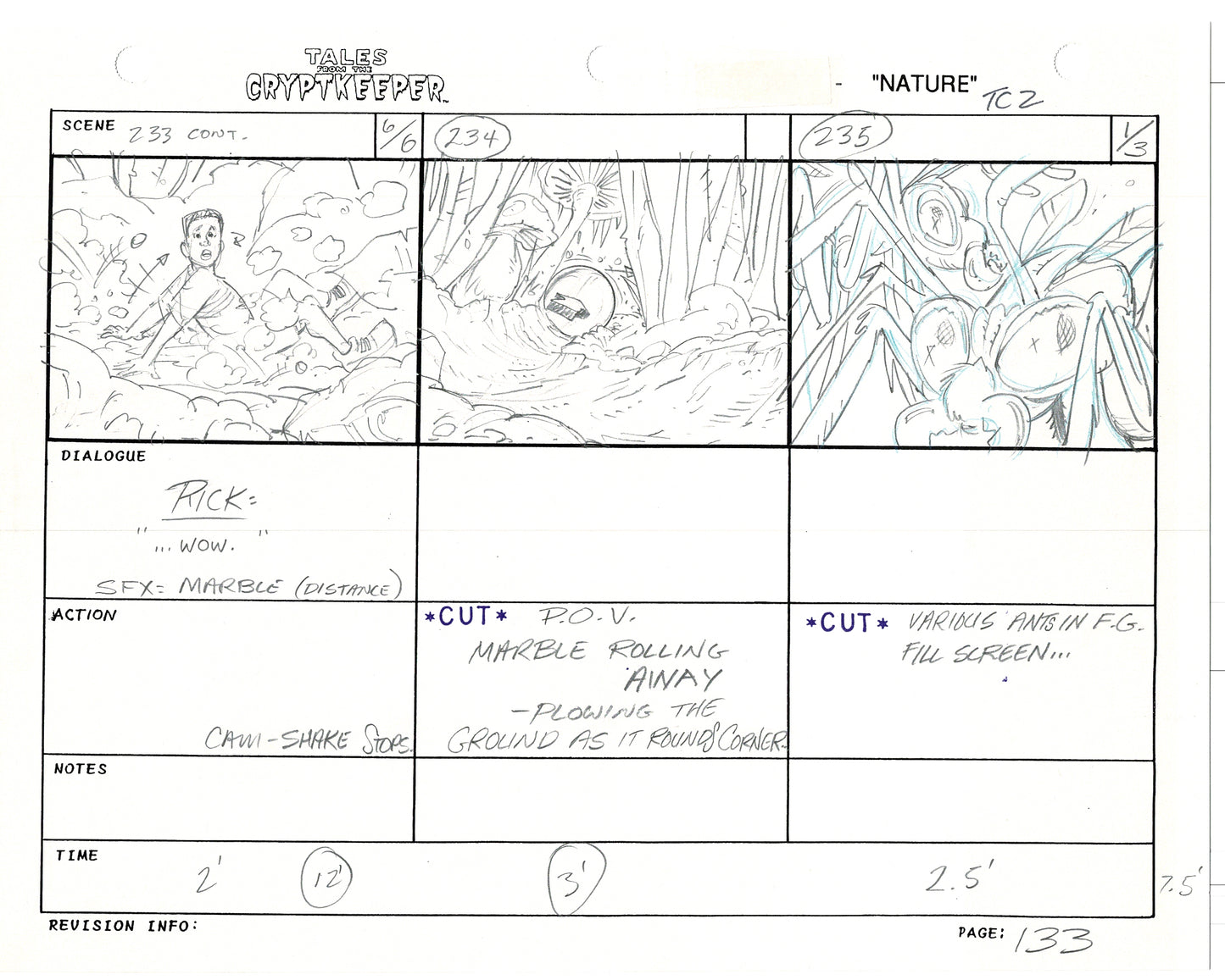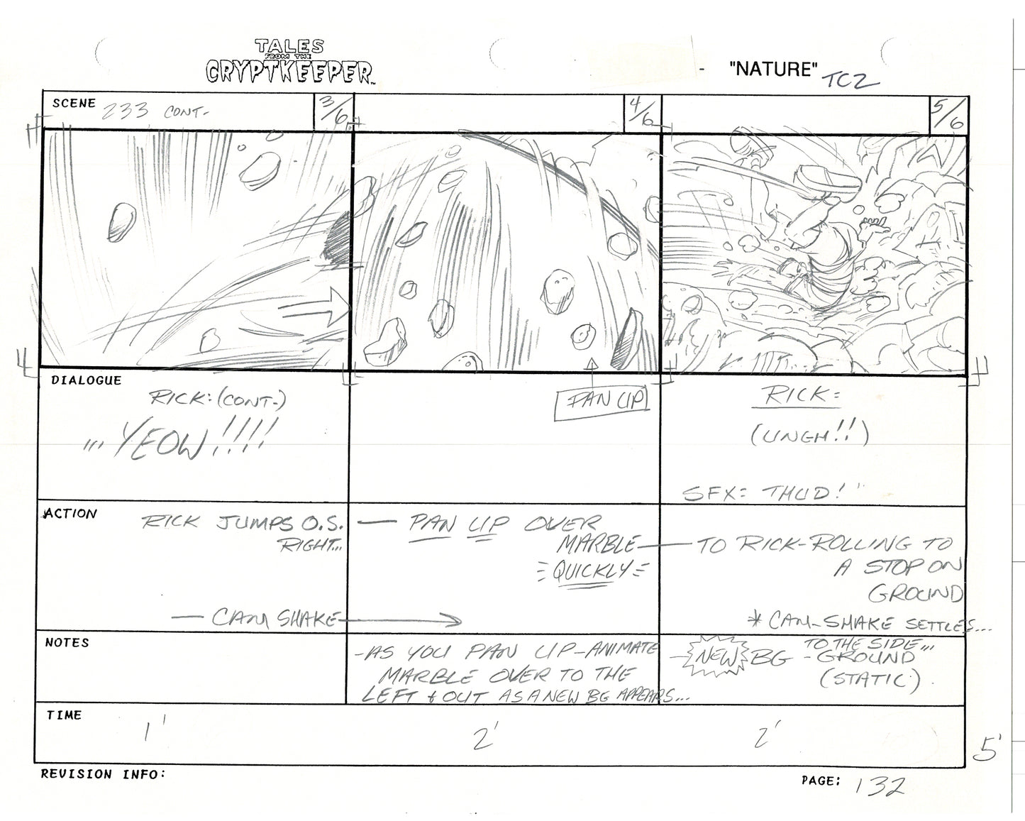 Most folks don't realize just how rare original storyboards are. Remember - there may be only ONE set of originals from an episode, versus all the cels and drawings. And this is a pair of rare, original hand-drawn, storyboards from the 1993-1994 Nelvana show. Specifically from the SECOND episode, "Nature" from 1993.