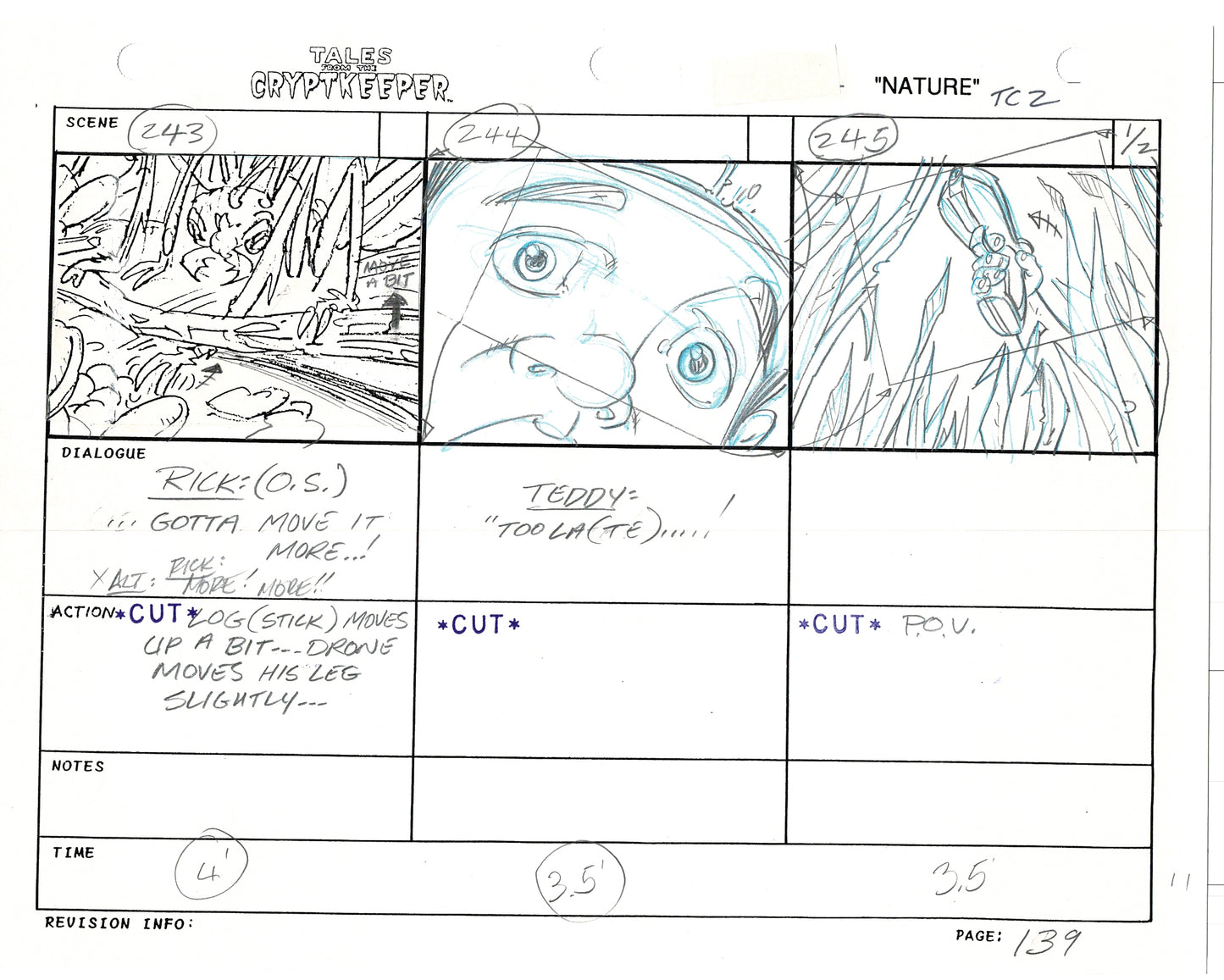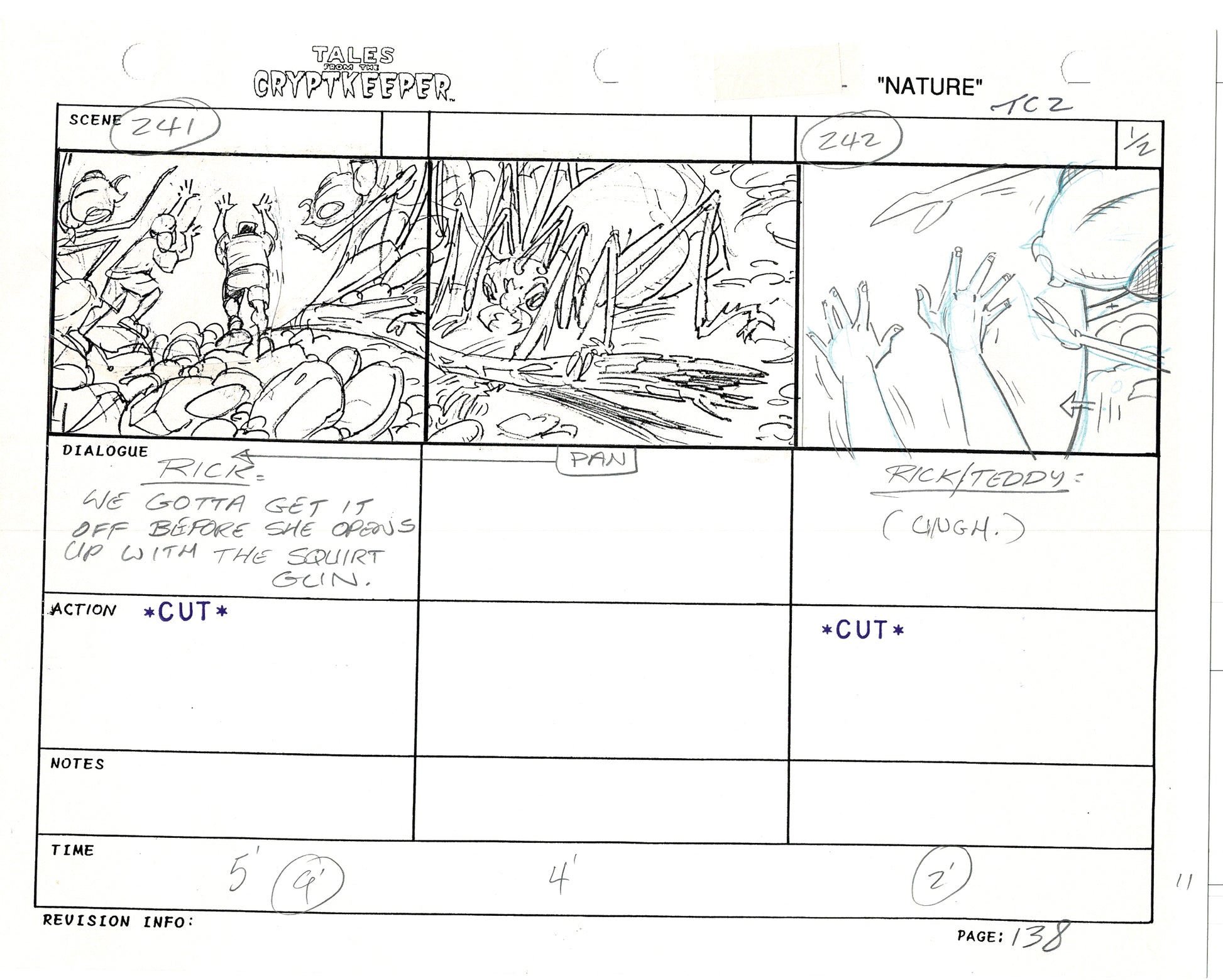 Most folks don't realize just how rare original storyboards are. Remember - there may be only ONE set of originals from an episode, versus all the cels and drawings. And this is a pair of rare, original hand-drawn, storyboards from the 1993-1994 Nelvana show. Specifically from the SECOND episode, "Nature" from 1993.