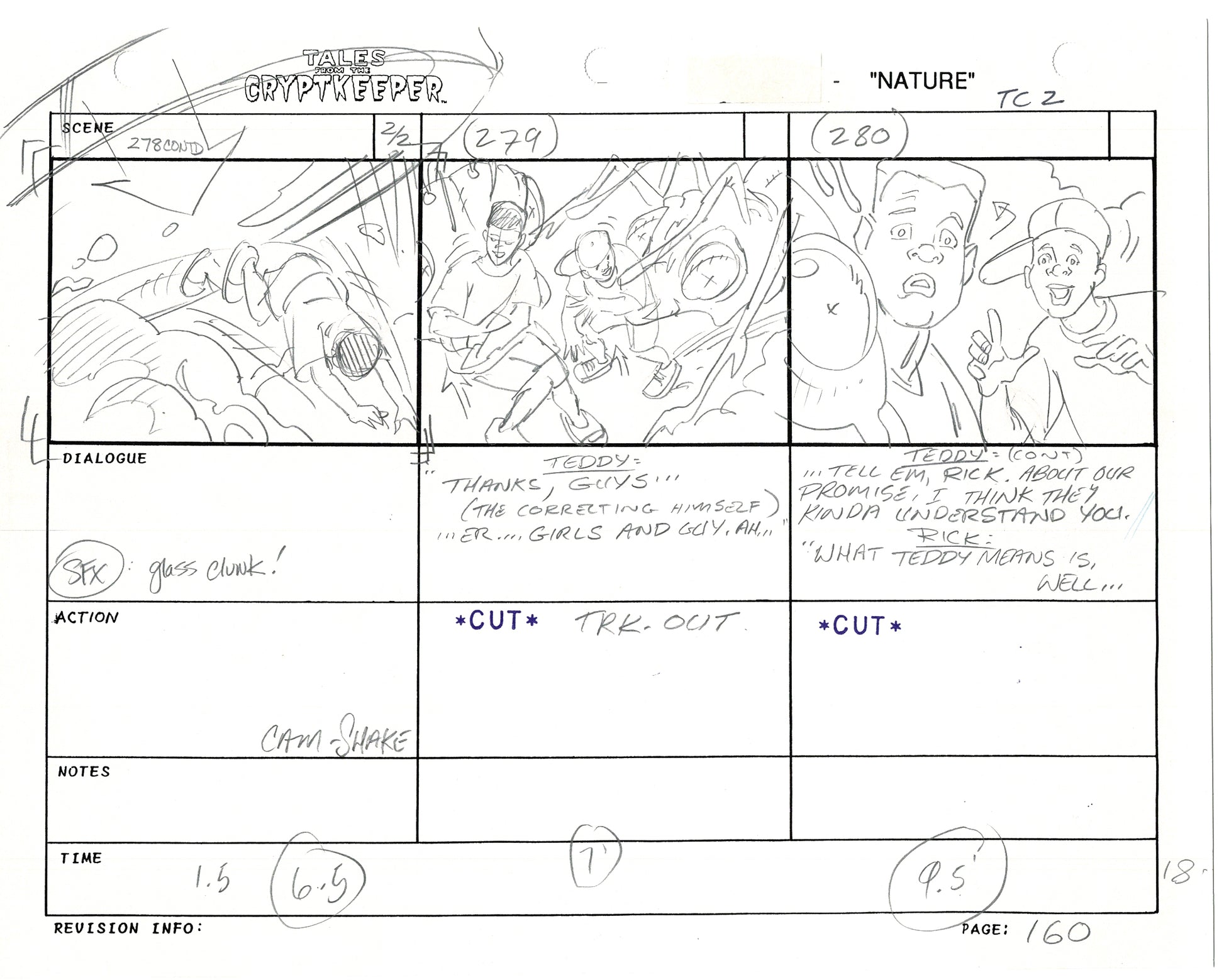 Tales From The Cryptkeeper 2 LOT Hand-Drawn Storyboards Nelvana 1993 E154-155