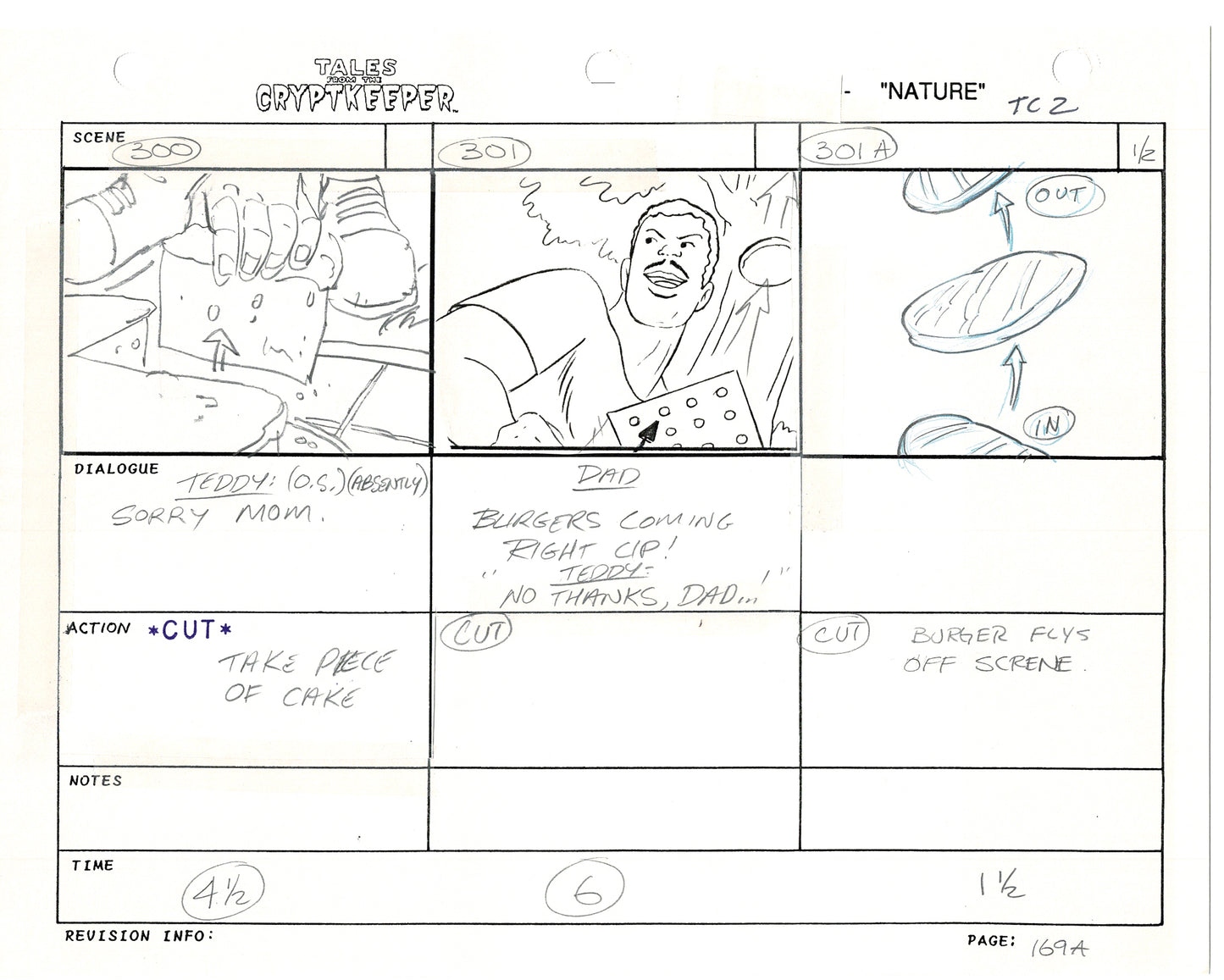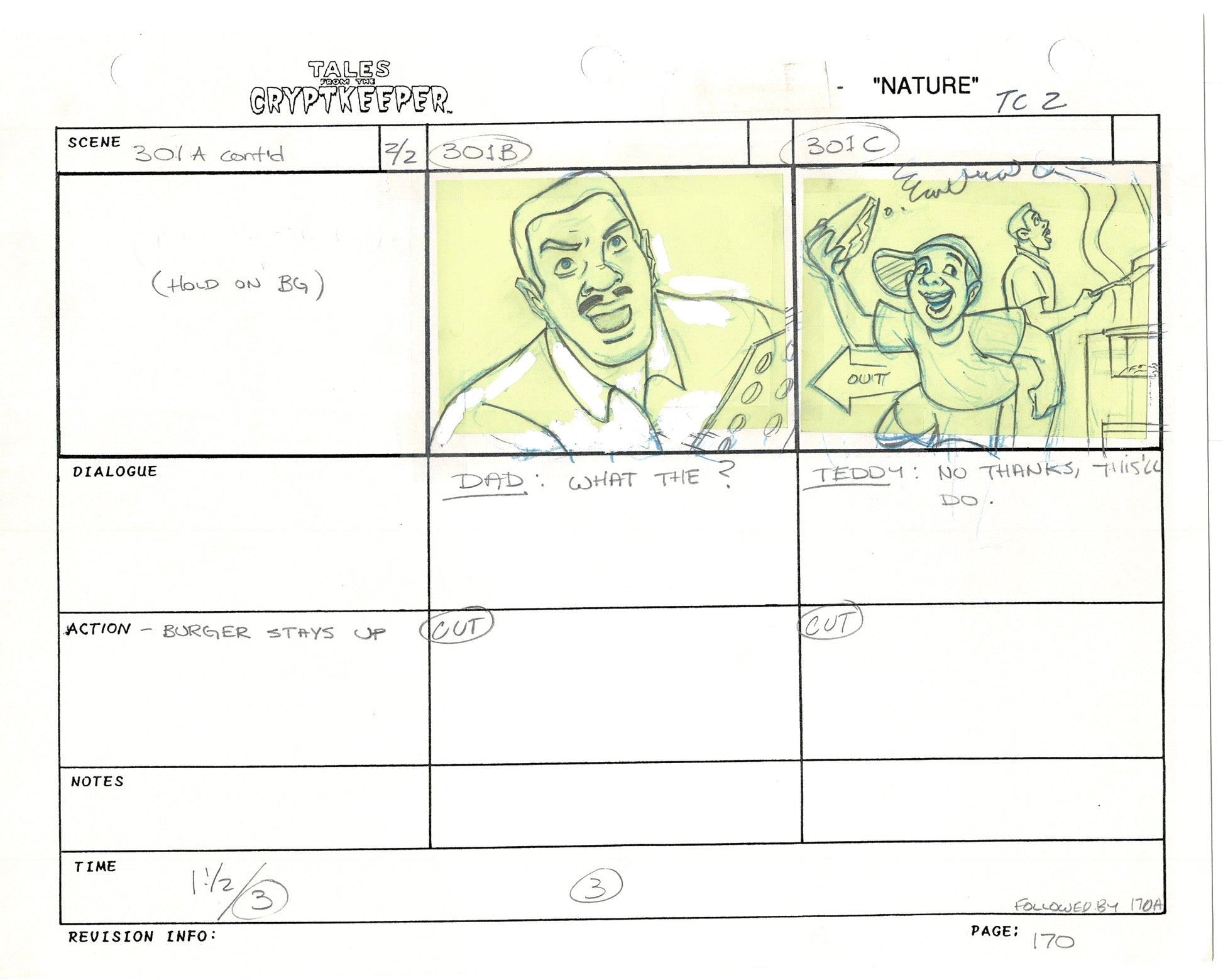 Tales From The Cryptkeeper 2 LOT Hand-Drawn Storyboards Nelvana 1993 E164-165