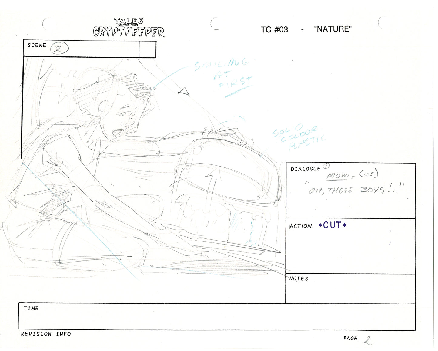 Most folks don't realize just how rare original storyboards are. Remember - there may be only ONE set of originals from an episode, versus all the cels and drawings. And this is a pair of rare, original hand-drawn, storyboards from the 1993-1994 Nelvana show. Specifically from the SECOND episode, "Nature" from 1993.