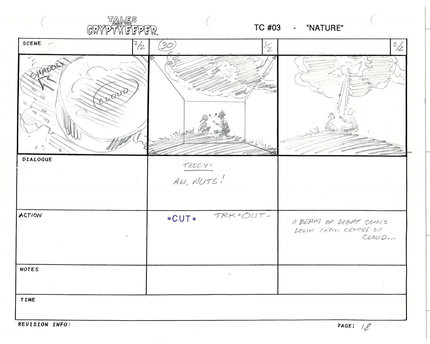 Most folks don't realize just how rare original storyboards are. Remember - there may be only ONE set of originals from an episode, versus all the cels and drawings. And this is a pair of rare, original hand-drawn, storyboards from the 1993-1994 Nelvana show. Specifically from the SECOND episode, "Nature" from 1993.