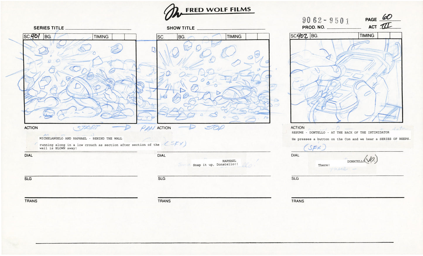 Teenage Mutant Ninja Turtles TMNT Original Production Animation Storyboard 1995 U3-60