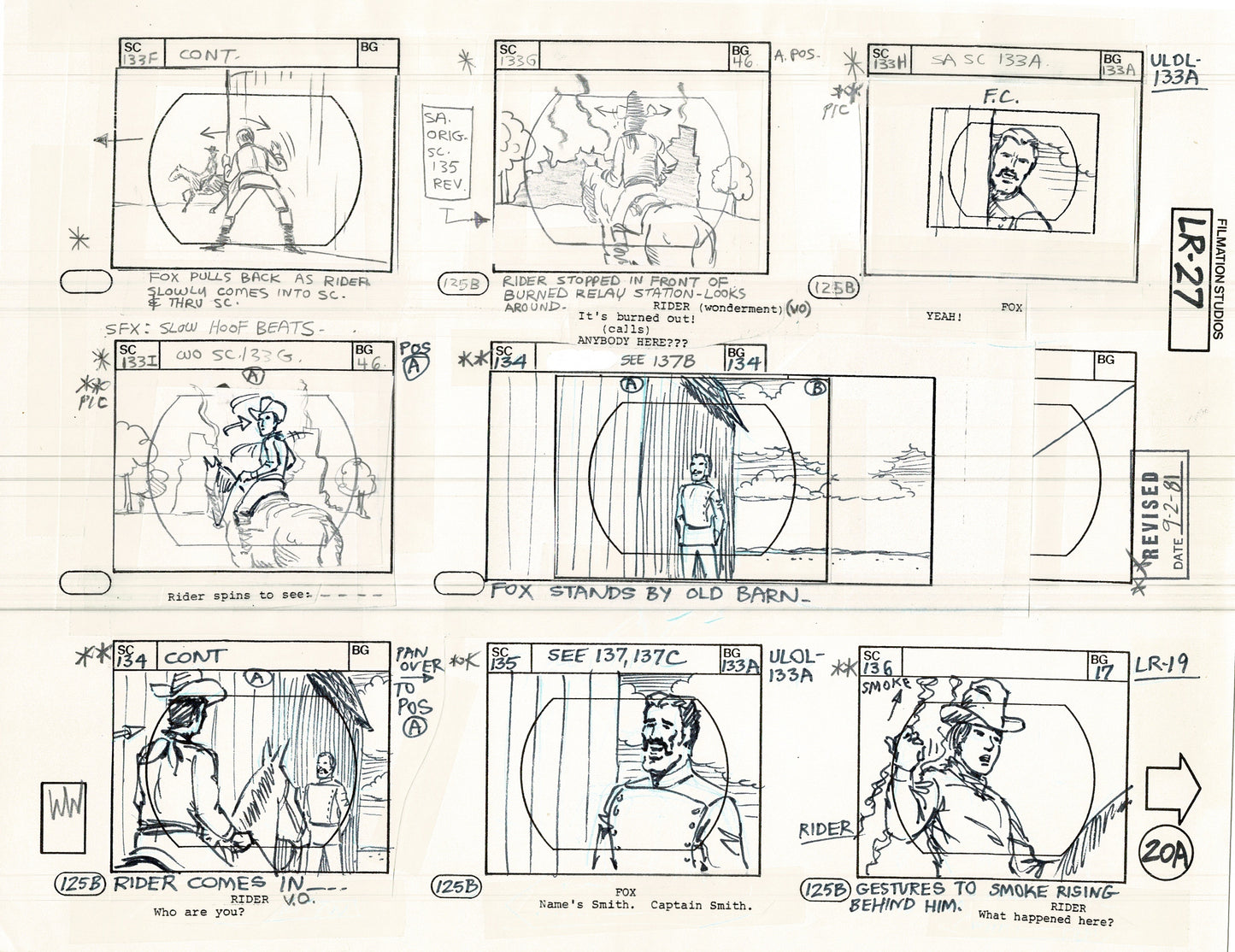 The Lone Ranger 1981 Production Animation Storyboard Page from Filmation B-027