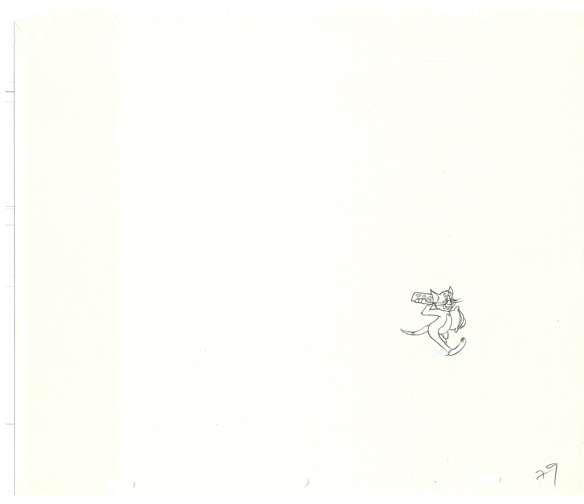 A production drawing used in the 1992 Tom and Jerry Movie. Hand-drawn by an animator for the production. Approximately 10.5" x 12.5". Has production wear and light yellow aging. NOTE: our scanner often adds a darker band on one side of a sheet of paper - that is NOT on the paper in real life.