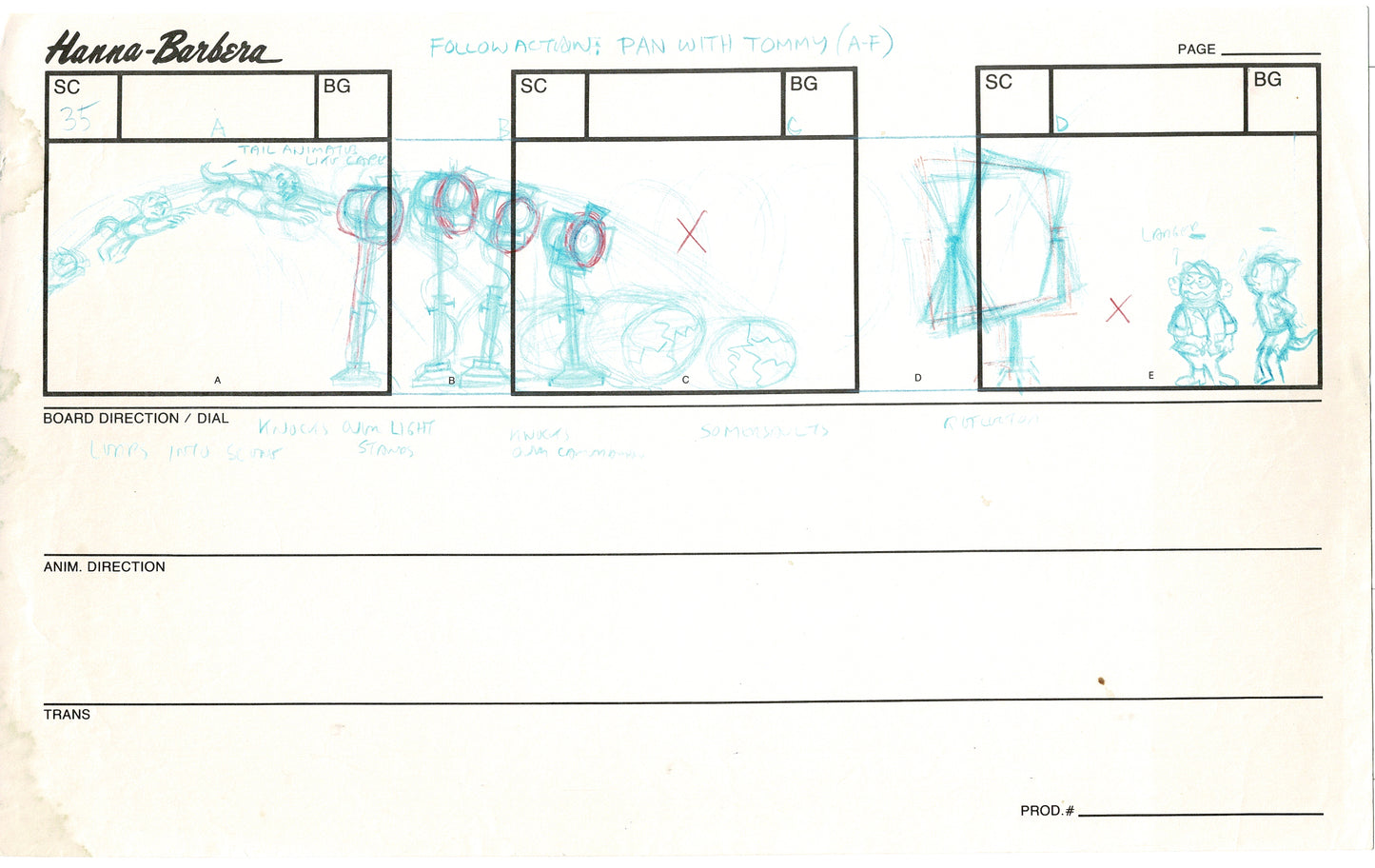 Tom and Jerry went through a number of studios and iterations and in 1990-1994 they were with Hanna-Barbera during the KIDS craze - when every cartoon was changed into little kids. Each episode is storyboarded - and these hand-drawn storyboards are FAR MORE RARE than the cels or drawings!!