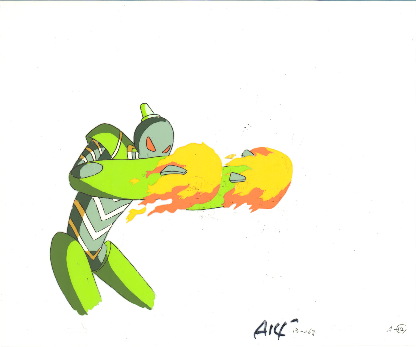 A nice full forward cel or cel setup (2 cels) of characters from this 1990's cartoon! Vor-tech was similar to M.A.S.K. - in fact many of the toys are really the same. It was redone later as the primary concept for A.T.O.M. Vor-tech was part of ABC's The Power Block.