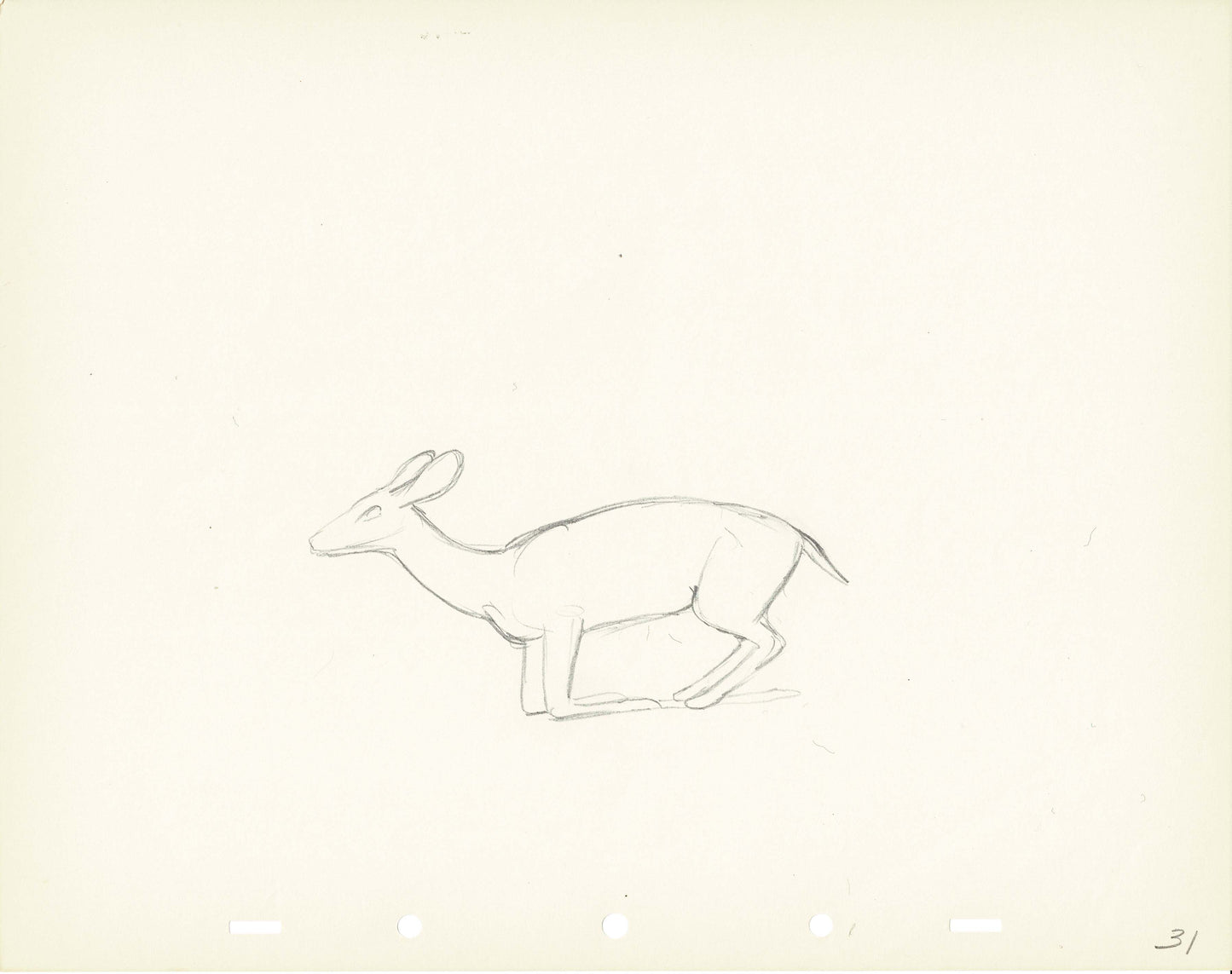 Walt Disney Rough Production Animation Cel Drawing or Study of a Deer 31m