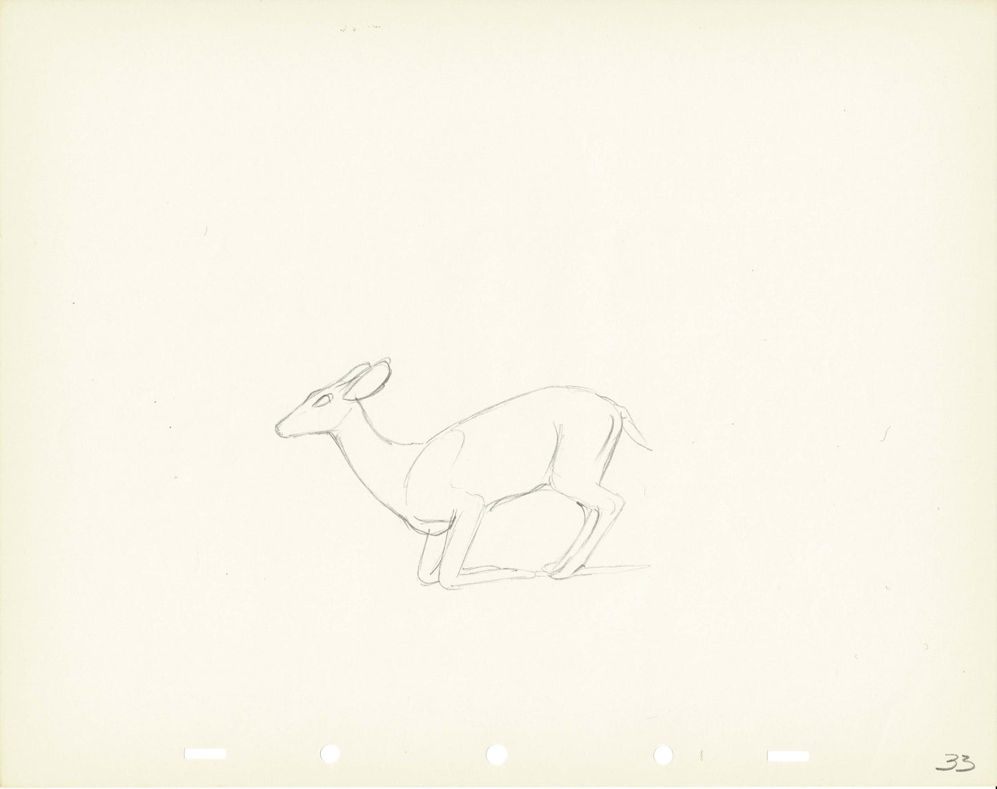 Walt Disney Rough Production Animation Cel Drawing or Study of a Deer 33m