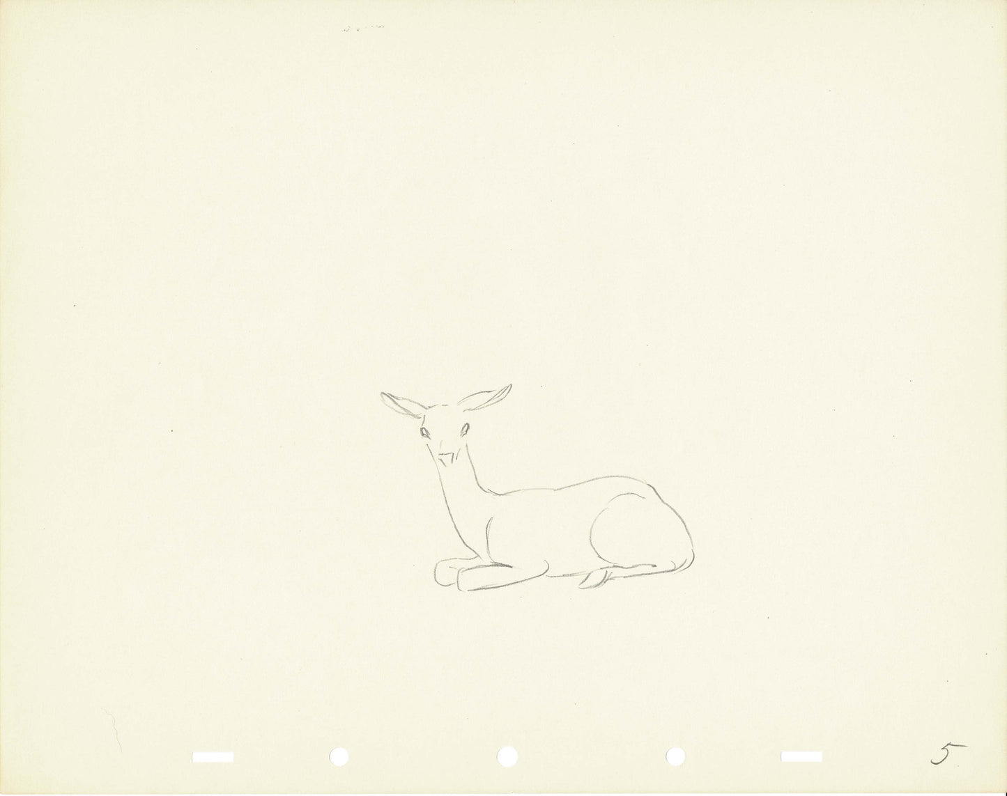 Walt Disney Rough Production Animation Cel Drawing or Study of a Deer 5m