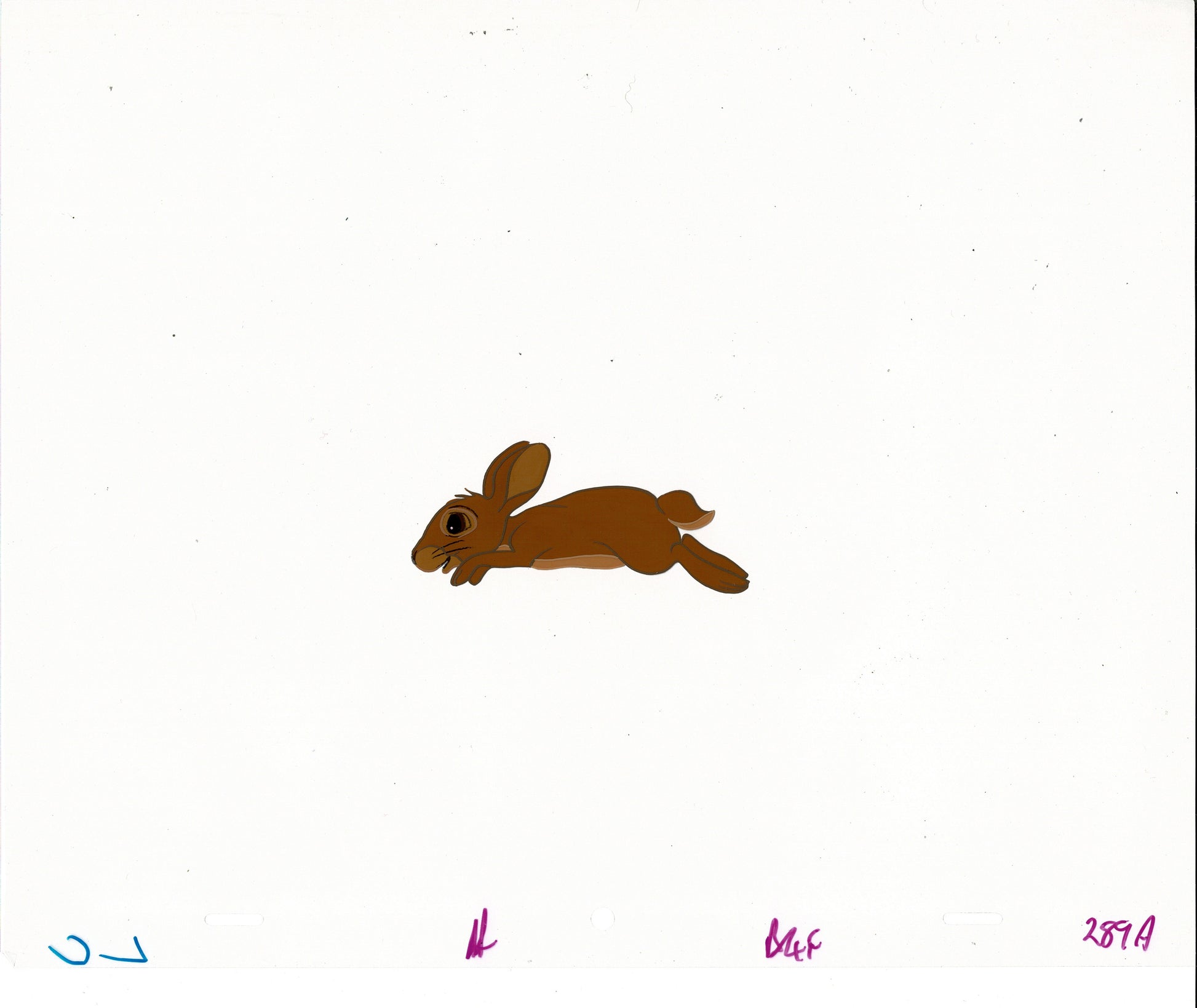 "Watership Down" by Richard Adams was published in 1972. It was originally turned down by many of the big London publishers before a smaller press took it on. The movie was release in 1978 to general acclaim. It's a nice interpretation of a large novel - something often difficult to do. NOTE: at least one of these cels is around 1/4" - 3/4" of an inch moved horizontally to the rest of the cels, it may or may not be able to be moved into alignment. If not, there may be a seam that shows through one of the rabbits at the edge.