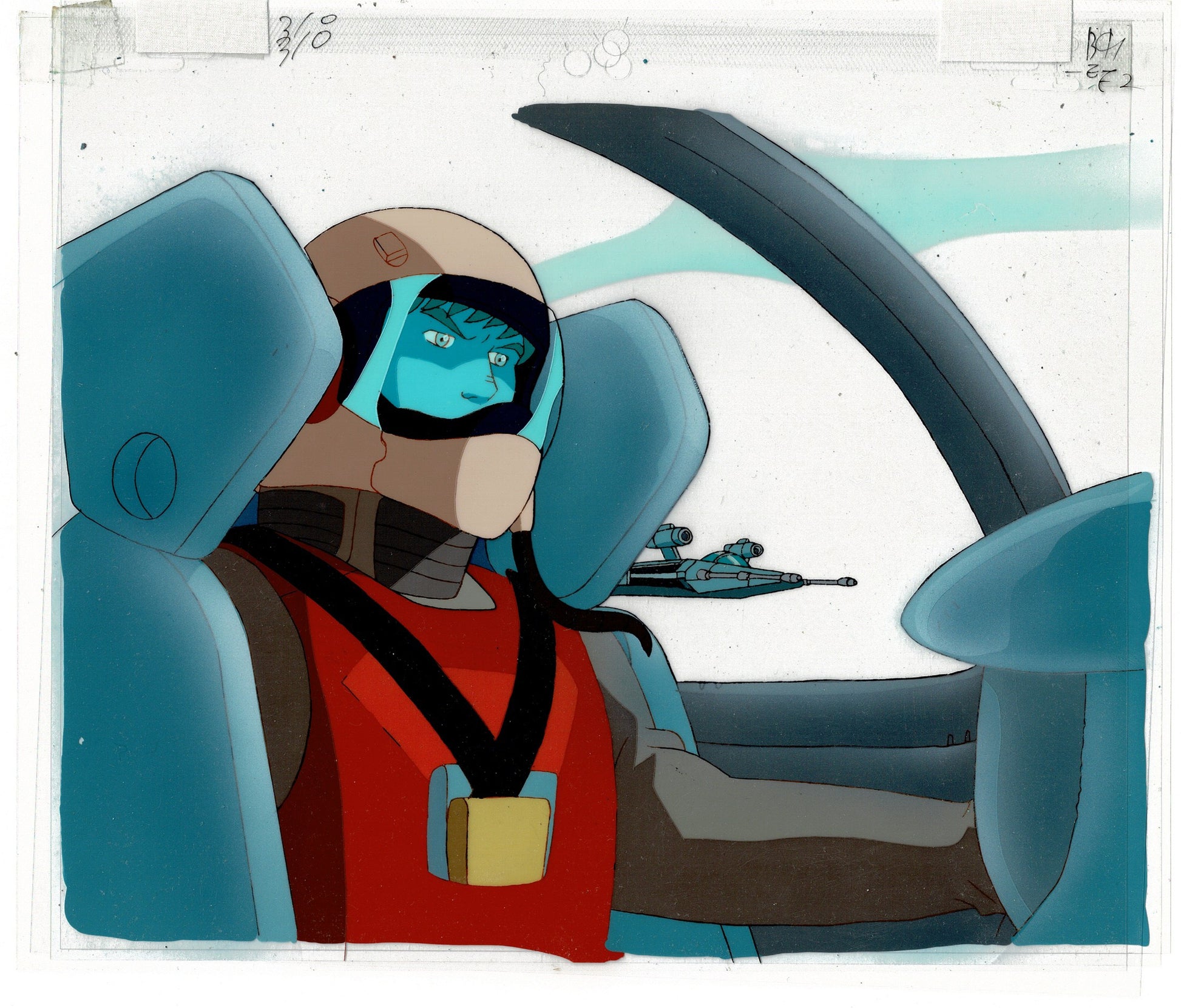 Remember the computer game Wing Commander? It was an early hit for us early geeks. And they made a cartoon out of it with MARK HAMILL voicing a lead! This is the actual art used to make the cartoon! Each cel (or setup in this case - multiple cels that make up one frame) is photographed once under the camera as a frame in the cartoon you saw on TV. And each one is unique! Cels of this era were even hand-painted on the back (all the colors). Comes with a color laser background.