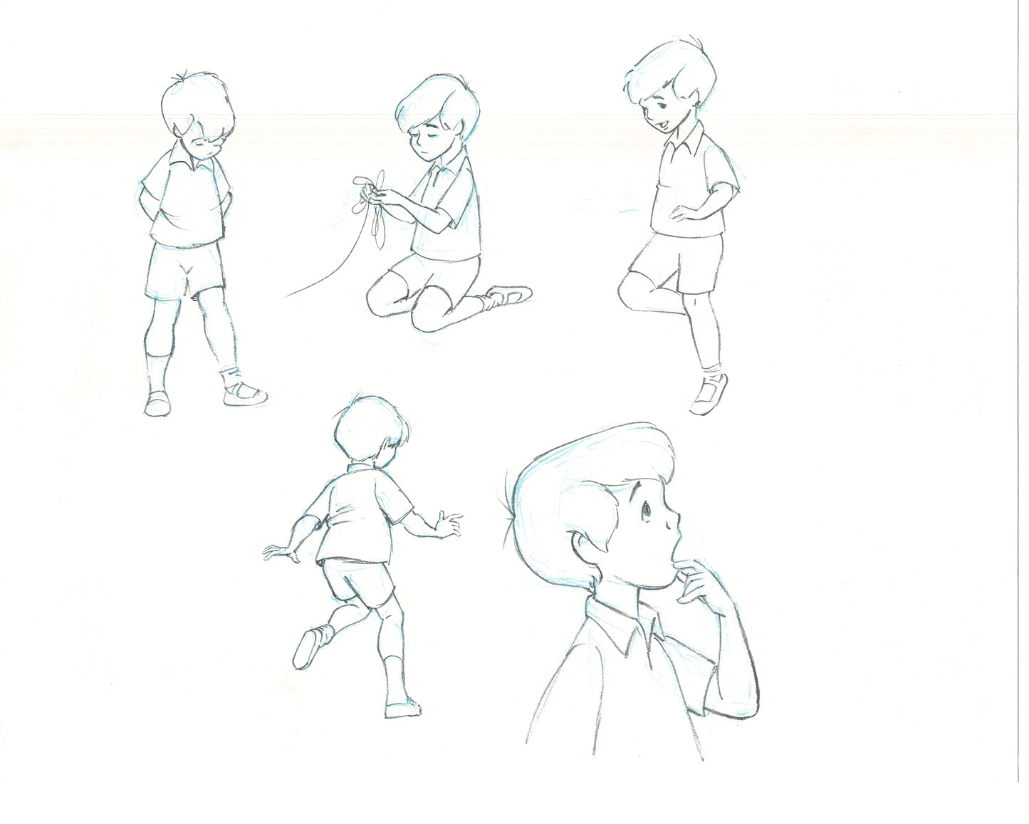 Wendell had a very long history working on Disney's Winnie the Pooh. Earlier in his career he worked on some of the 1970's/1980's educational film strips all the way up to Pooh's Grand Adventure: The Search for Christopher Robin (1997). While his IMDB doesn't have him listed as working on New Adventures, we have his notes, listing "4w87-010 - Pooh Oughta Be In Pictures," "4w87-051 - Balloonatics," and "4w87-130 - Paw and Order" as episodes he worked on - we believe these drawings are from those episodes.