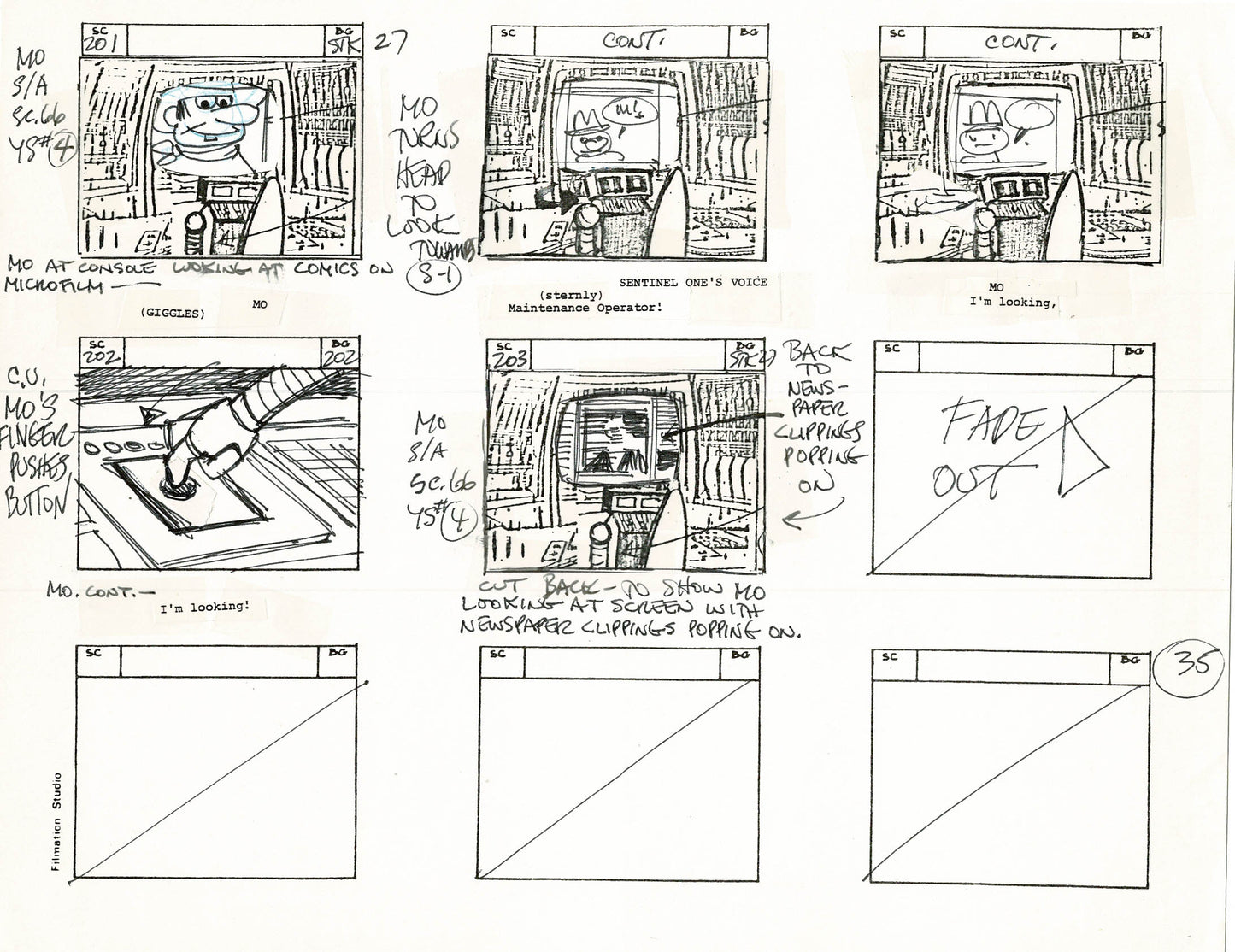 Young Sentinels / Space Sentinels 1977 Production Animation Storyboard Page Filmation A-038