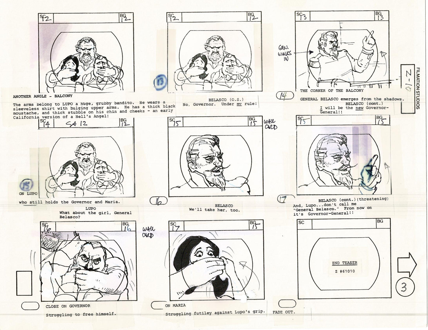 Zorro Storyboard Art Cartoon Page Vintage Animated Filmation 1981 A-003
