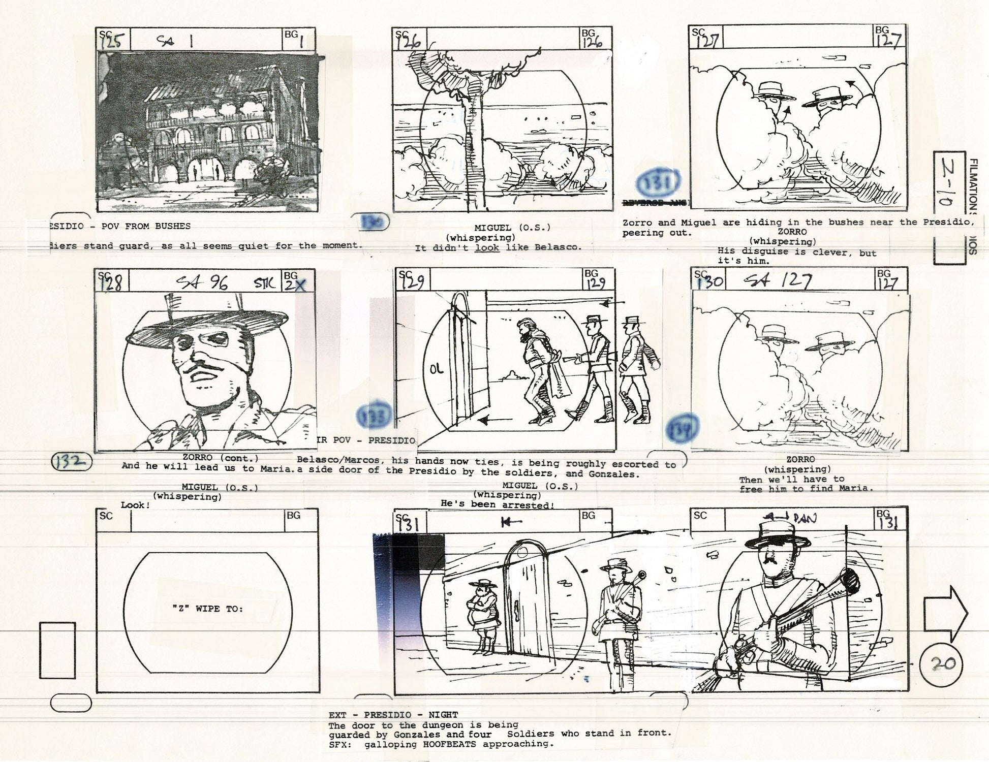 Zorro Storyboard Art Cartoon Page Vintage Animated Filmation 1981 A-023