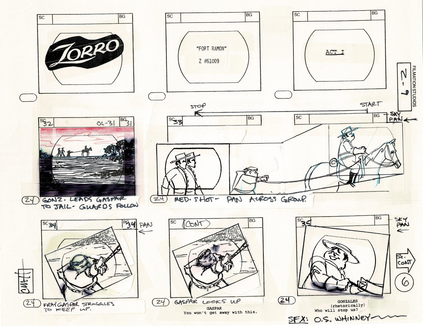 Zorro Storyboard Art Cartoon Page Vintage Animated Filmation 1981 B-002